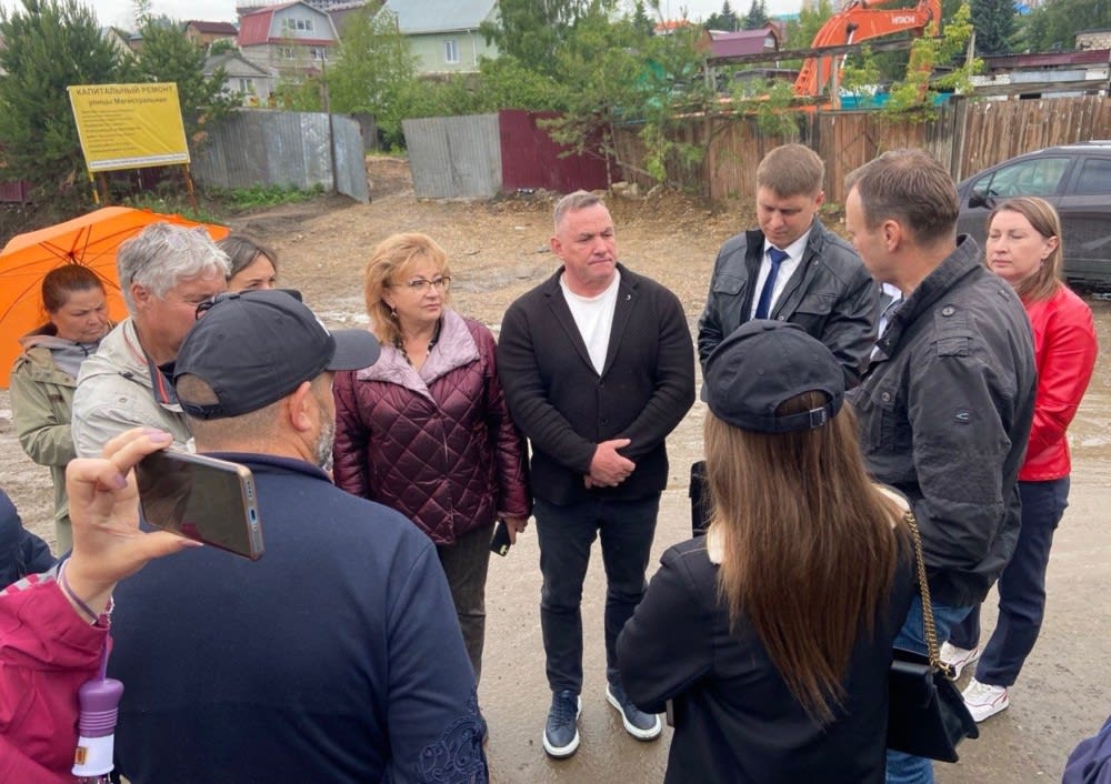 В микрорайон прибыли депутаты Виктор Побойкин, Галина Кудрявцева и представляющий интересы жителей Марковского МО Антон Малышев. Они провели выездное совещание с участием министра транспорта и дорожного хозяйства Максима Лобанова, представителей марковской администрации и подрядчика, ведущего ремонт дорог.
