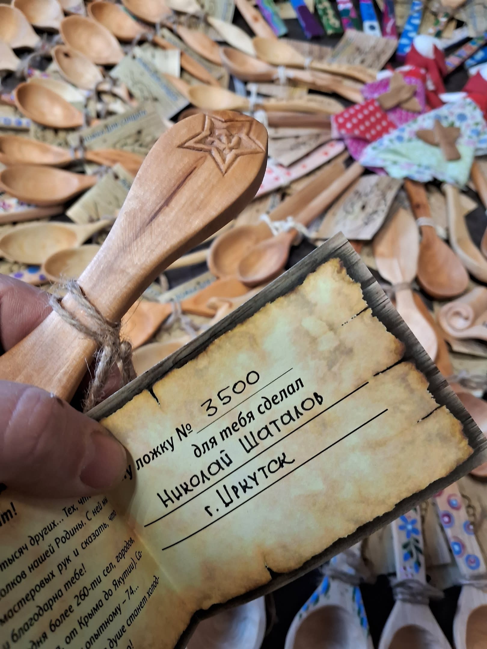 Каждой ложке мастера присваивают номер, оформляют паспорт с указанием породы дерева, из которого она изготовлена, фамилию, имя мастера и регион. Например, ложка под № 3500 от иркутского мастера Николая Шаталова досталась девушке с позывным «Звездочка» – бойцу легендарного подразделения «Пятнашка».