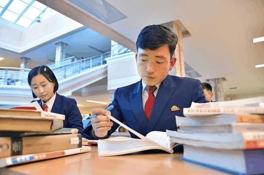 В КНДР студенты Университета имени Ким Ир Сена прилагают силы к научному изучению в благоустроенной в нем научной библиотеке.