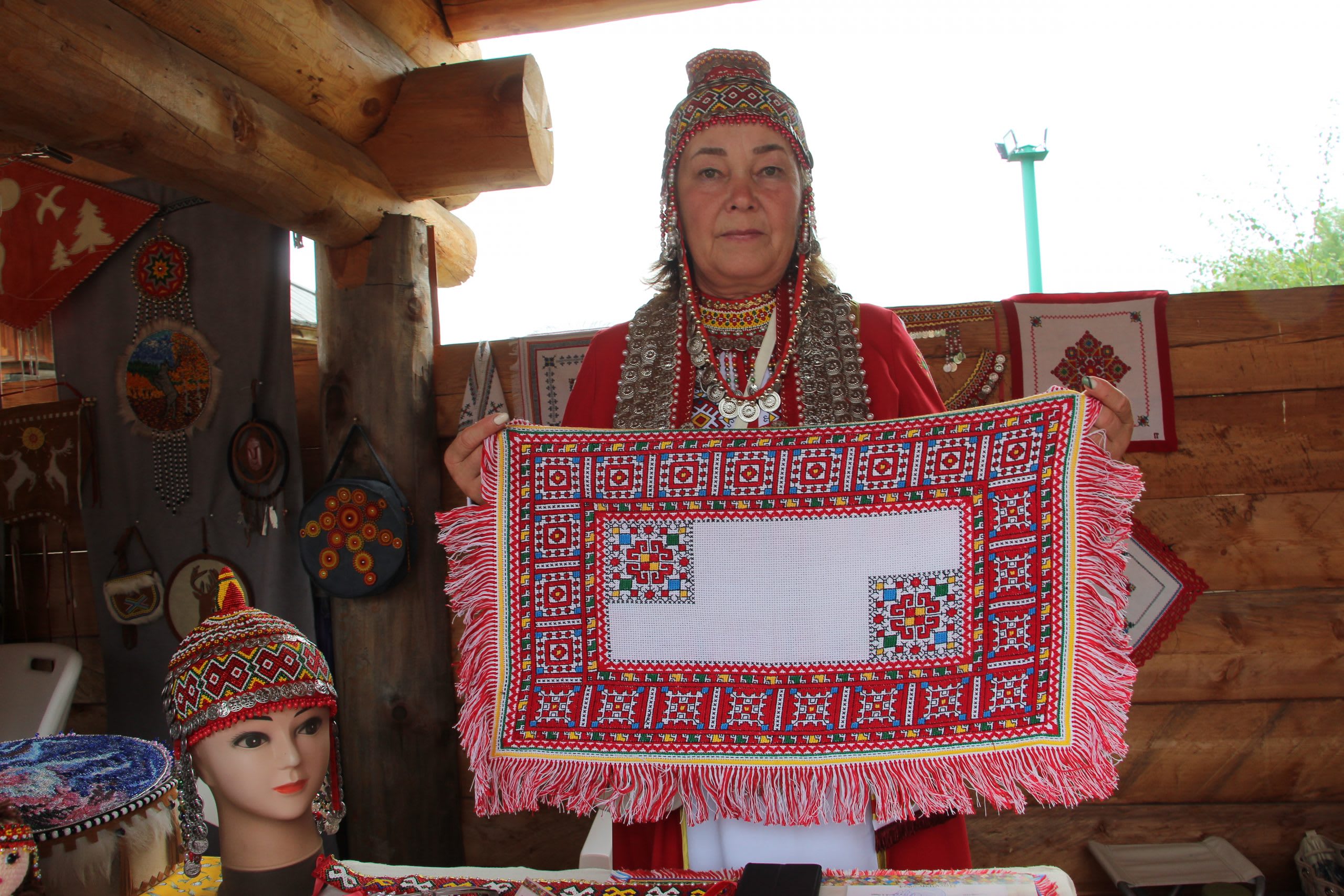 Среди участников фестиваля – Татьяна Прокопчук из Зиминского района. На протяжении пяти лет она занимается чувашской вышивкой, и три – изготовлением женских головных уборов. И девичья шапочка «тухья», и женская «хушпу» богато украшены монетками и бисером.