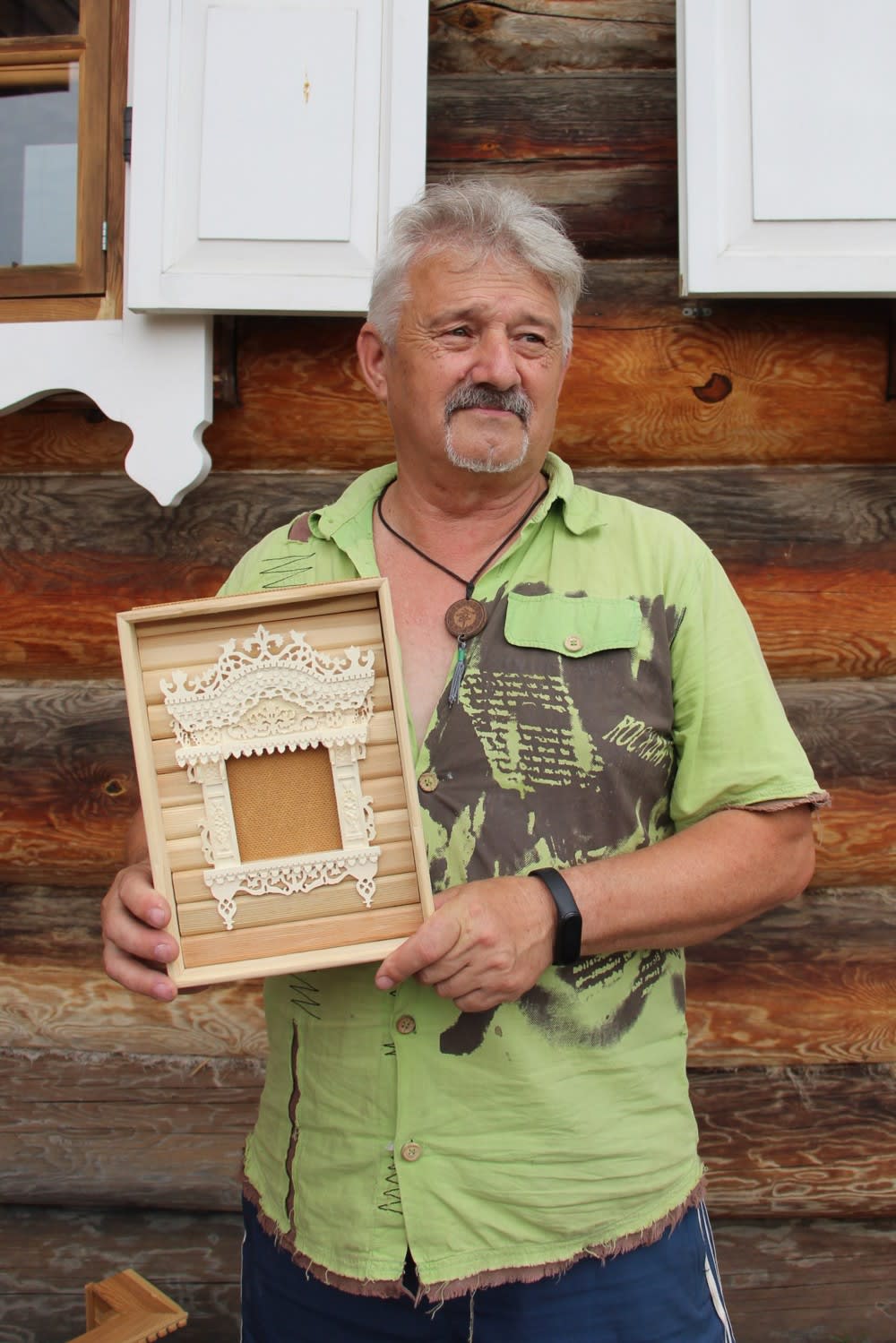 – Этот дом находится в Бугульдейке, я его сфотографировал и рассчитывал размер по бревнышку. Дом стоит заброшенный, может, через год-два сгорит, а у меня останется в этой работе, – показывает на терем мастер. – Еще я хочу показать красоту окон: гуляю по Иркутску, по селу, фотографирую и запечатлеваю в своих панно.