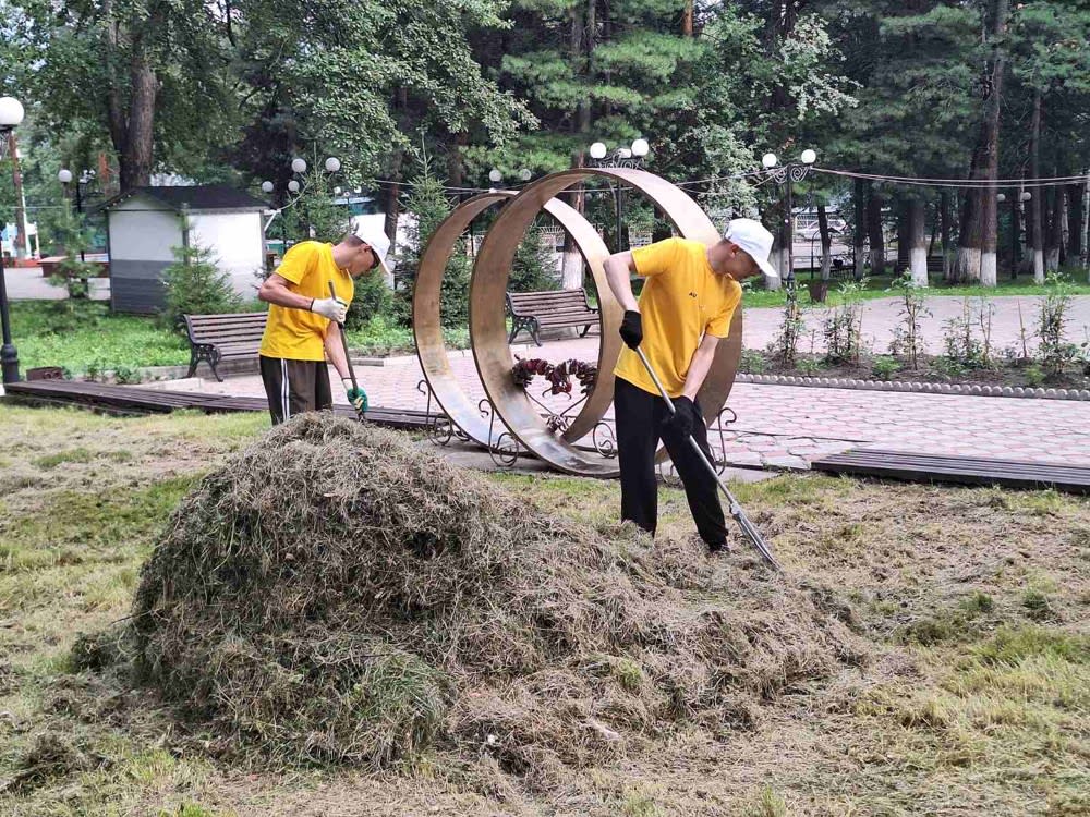 – Мы берем ребят в возрасте от 14 до 17 лет. Рабочая неделя длится пять дней, в выходные они дома. Трудятся по четыре часа, график предусматривает перерывы для отдыха. К новому учебному году наша молодежь готовит спортивные объекты – бассейн, лыжную базу, стадион, физкультурно-оздоровительный комплекс. Они убирают территорию, что-то красят или белят. В этом году попросили помочь с уборкой скошенной травы в городском парке. До этого убирали траву с цветочных клумб, которые находятся рядом с церковью, – объяснил Юрий Тюрин, директор муниципального учреждения дополнительного образования «Детский оздоровительно-образовательный центр города Бодайбо».