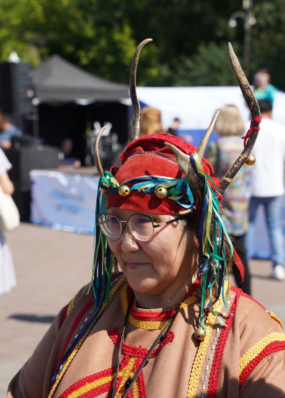 По древней традиции любое мероприятие эвенки и тофы начинают с обряда очищения, гости проходят через небесные врата – «чичипкан», повязывают разноцветные ленты, загадывая желания. На набережной Ангары древний обряд провела одна из старейших представительниц Катангского района Ия Ивановна Цуркан.