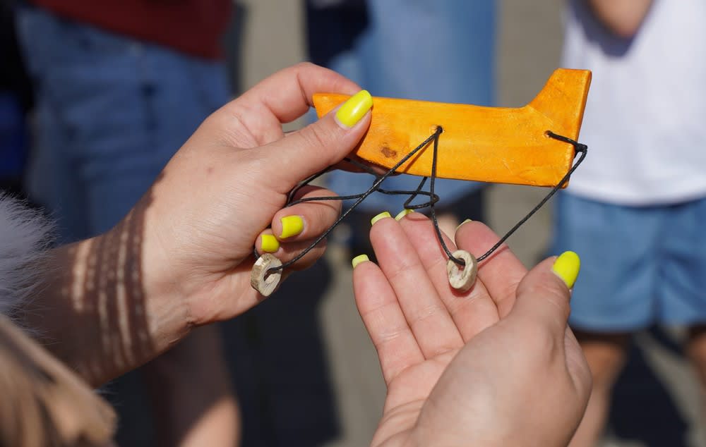 Любовь Михайловна Маслянко из Бодайбинского района с коллегами привезли не только образцы декоративно-прикладного творчества, но и несколько национальных настольных игр. Для всех желающих Любовь Михайловна провела мастер-класс популярной игры «Урурдук буридеми», которая, как мне кажется, сродни русской игре в бабки. Слово «бабки» в данном случае не имеет никакого отношения к деньгам. Смысл народной игры заключается в точном бросании косточки (бабки) в выстроенный городок. При кажущейся на первый взгляд простоте настоящий игрок помимо точности должен иметь определенную тактику и стратегию на игру.