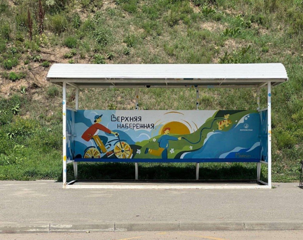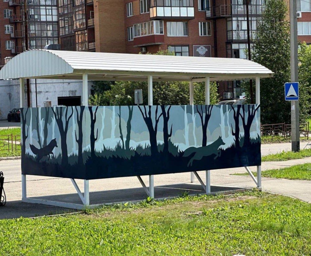 В Октябрьском округе Иркутска художники расписали остановки общественного транспорта. Преобразились два пункта «Верхняя Лисиха», «Нижняя Лисиха» и «Верхняя Набережная». Работы олицетворяют наименования остановок. На каждую нанесли названия. Об этом 13 августа 2024 года сообщила пресс-служба городской администрации.