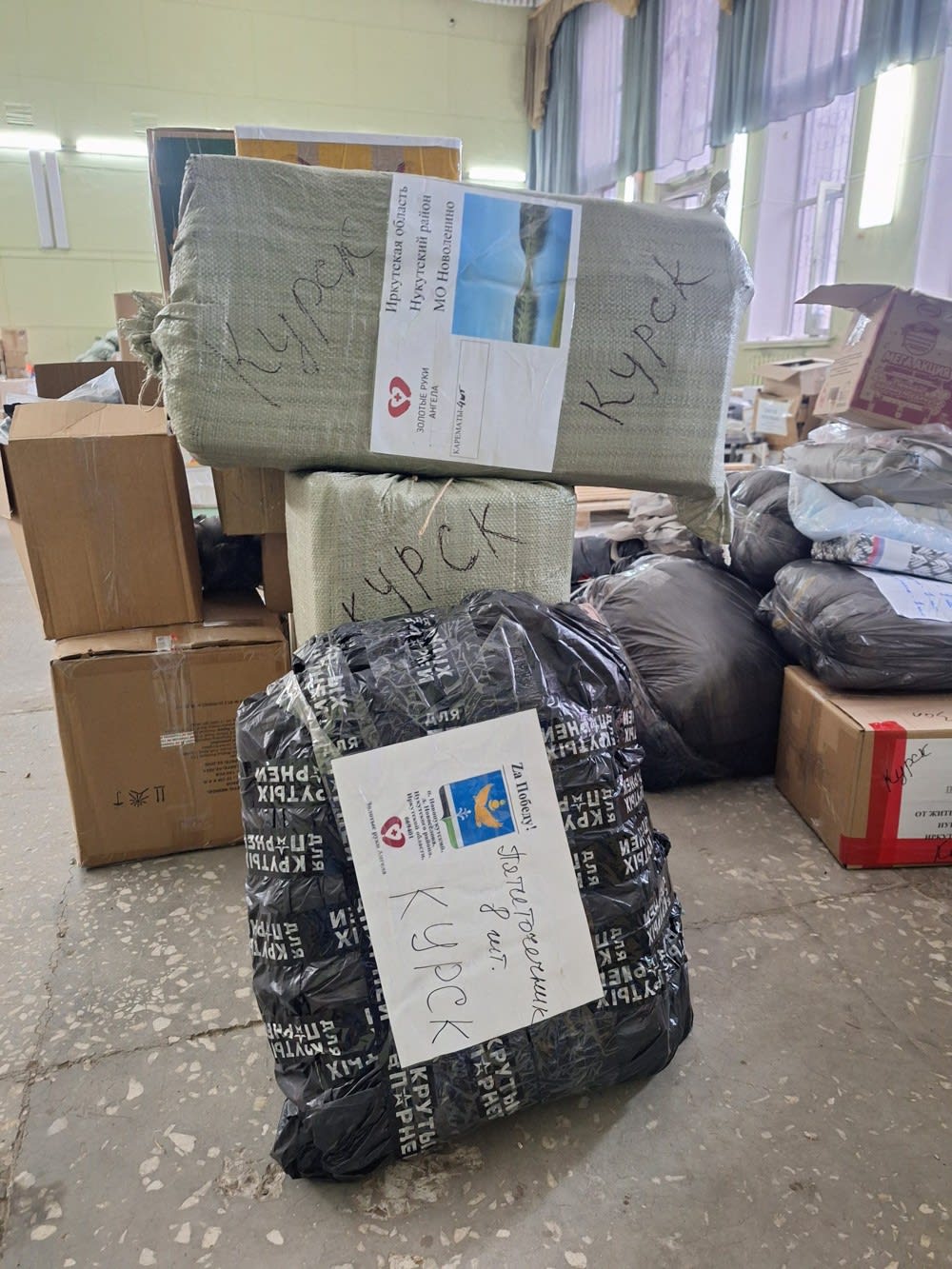 Утром 20 августа гуманитарную помощь для Курска привезли сотрудники «Иркутской дистрибьюторской компании». В коробках – макароны, крупа, чай. Ребята помогают не в первый раз – раньше привозили сюда гуманитарку для Донбасса.