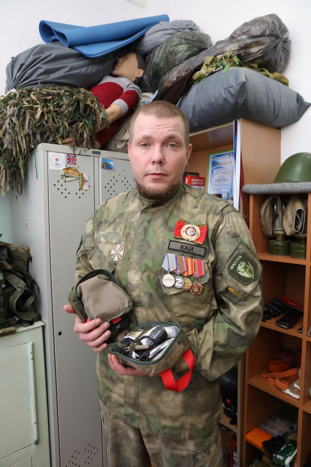 – Перед поездкой в Курск и на Донбасс мы бросили клич в соцсети. Откликнулись люди со всей области. Кто-то помог финансово, в т.ч. в починке автомобиля, в медицинских закупках, в приобретении техсредств. Кто-то принес нефапам, перевязочные пакеты. «Золотые руки Ангела» помогли носилками. Кстати, одно из их отделений находится здесь в общежитии, где ребята плетут маскировочные сети. Конечно, сбор организовала и администрация нашего техникума. Очень хорошую помощь оказал иркутский комбинат питания. Многие частные лица не остались в стороне. В итоге собрали хороший груз. Наши студенты помогали его формировать и отправлять.