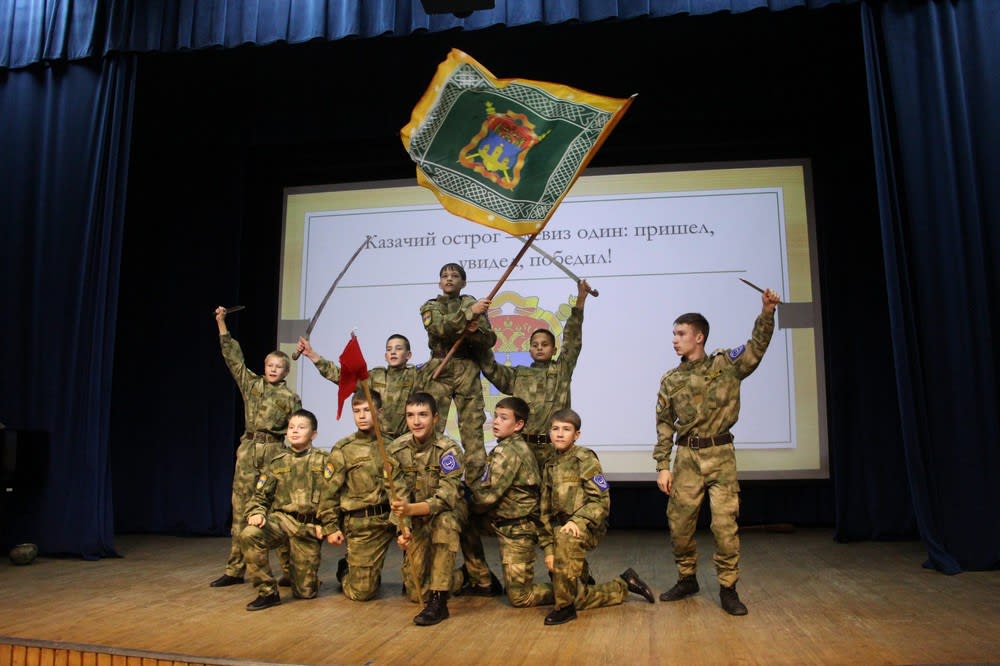 О своем родном крае, школе и казачьем обществе кадеты рассказали на этапе «Визитная карточка». Песни, танцы, демонстрация силовых приемов и фланкировка шашкой – каждое выступление кадеты поддерживали аплодисментами и криками «Любо!».