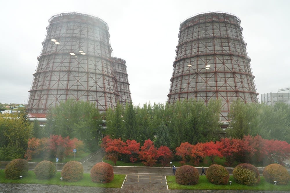 Со стороны города ТЭЦ кажется небольшим предприятием, на фоне корпусов гигантами выглядят лишь градирни. Огромные установки используются для охлаждения воды атмосферным воздухом. Вода под напором поднимается вверх, затем падает вниз, образуя непрерывный водопад и поступает снова на ТЭЦ. В результате охлаждения выделяется пар, который многие принимают за дым. Когда попадаешь на территорию ТЭЦ, понимаешь, насколько впечатления обманчивы – предприятие просто огромное.