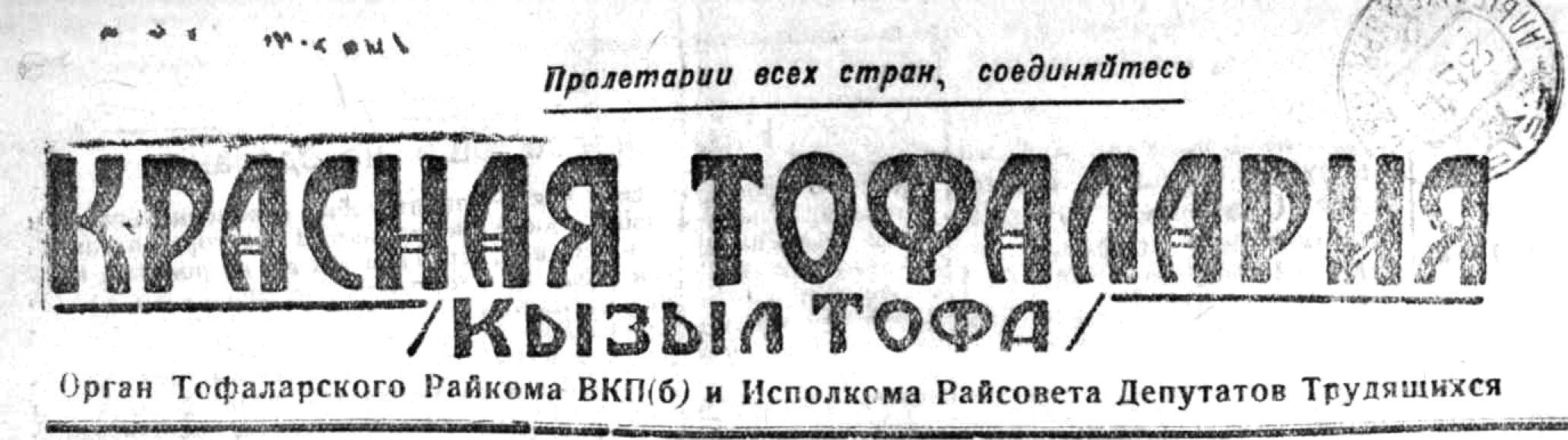 Сегодня читаем газету «Красная Тофалария» за апрель 1944 года.
