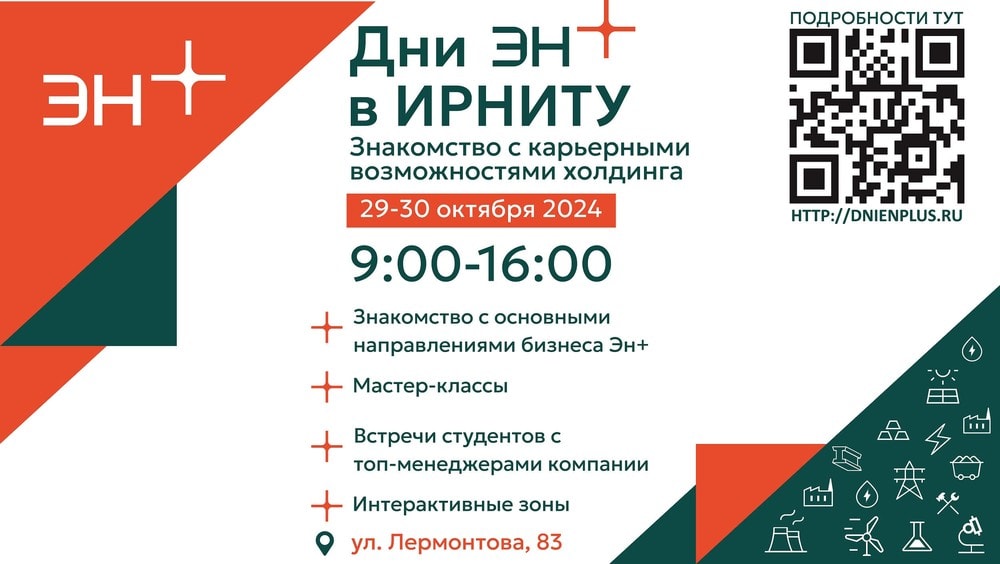 Приходи в Иркутский Политех и сделай первый шаг навстречу своей профессии вместе с Эн+! Подробная программа и форма для регистрации на сайте dnienplus.ru.