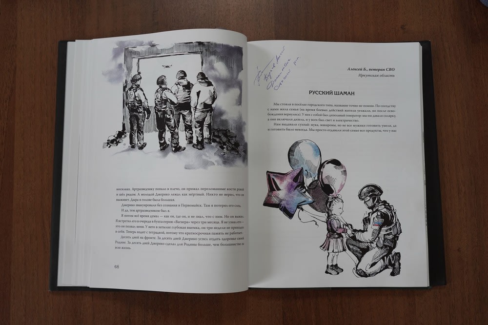 Фонд «Защитники Отечества» готовит к выпуску уже третий сборник с рассказами об СВО. Какие истории бойцов из Иркутской области войдут в него, пока неизвестно. Тем временем в Ольхонском районе есть договоренность с властями опубликовать свой сборник с рассказами воинов-ольхонцев хотя бы в электронном виде. Но, надеемся, что найдется меценат, который поможет издать бумажную версию бесценных свидетельств героев нашего времени.