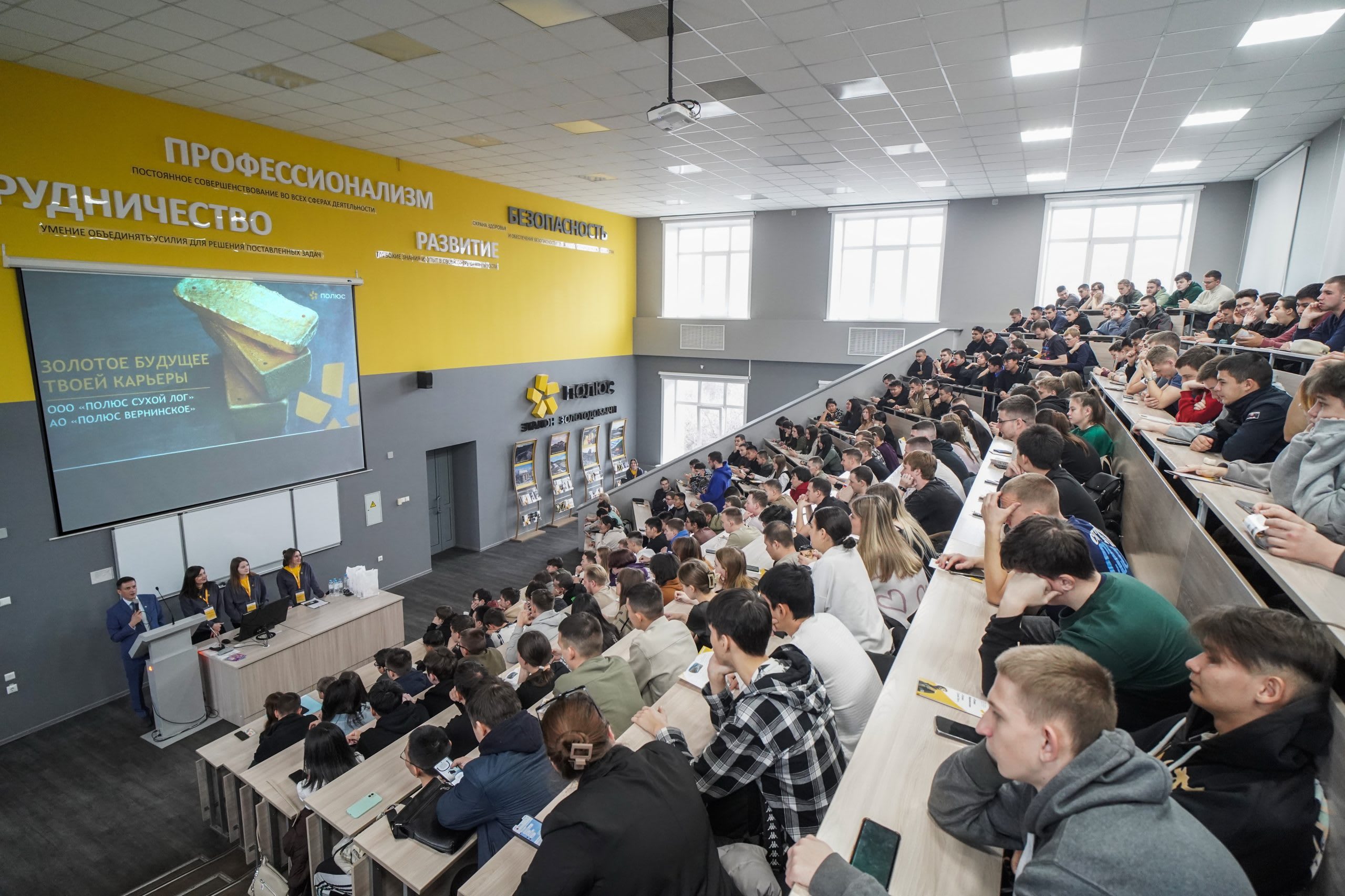 – В ИРНИТУ открыли вторую профильную аудиторию «Полюса». Здесь есть информация о его активах, производственных процессах, известных выпускниках вуза, которые работают в компании. Со студентами, а также учащимися «Полюс-класса» золотодобытчики по видеосвязи проводят занятия и знакомят с работой предприятий.