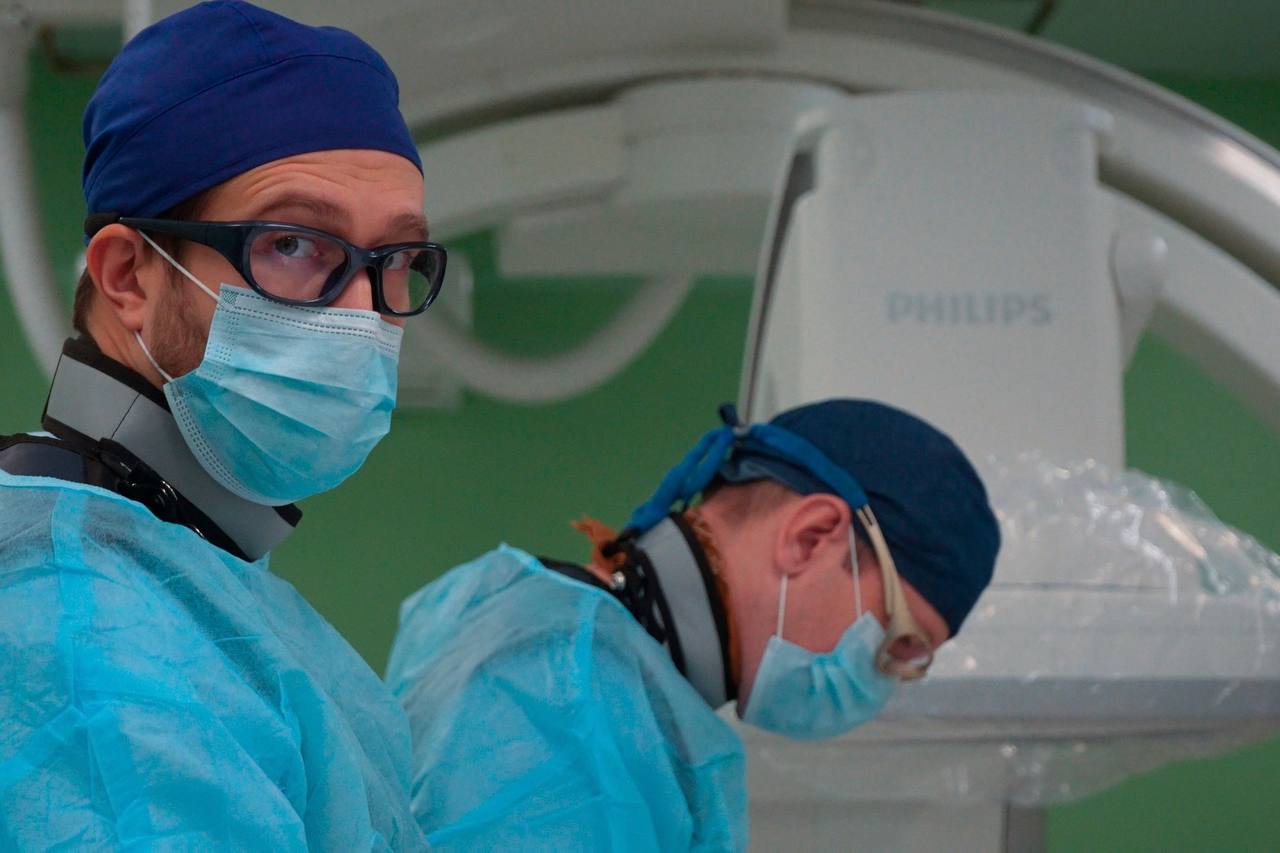 – Во внутриутробном развитии открытый артериальный проток – это норма. После рождения он должен закрываться. Но в некоторых случаях остается открытым. Мы закрываем его самым щадящим способом – через небольшой прокол в области паха, без разрезов. В прокол заводится специальный катетер, а через катетер проводится специальное устройство в виде спирали, которое и закрывает артериальный проток, – рассказал заведующий отделением рентгенохирургических методов диагностики и лечения Максим Ширкин.