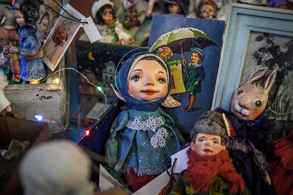 На инициативу Иркутской епархии, содружества мастеров «Шишка-маркет» и Иркутского дома народного творчества откликнулись многие умельцы. Они разместили свои изделия в залах музея, где тоже царила новогодне-рождественская атмосфера. Например, у стенда с Дедом Морозом, Снегурочкой и другими ватными елочными игрушками авторства Натальи Бринько покупатели будто возвращались в детство.