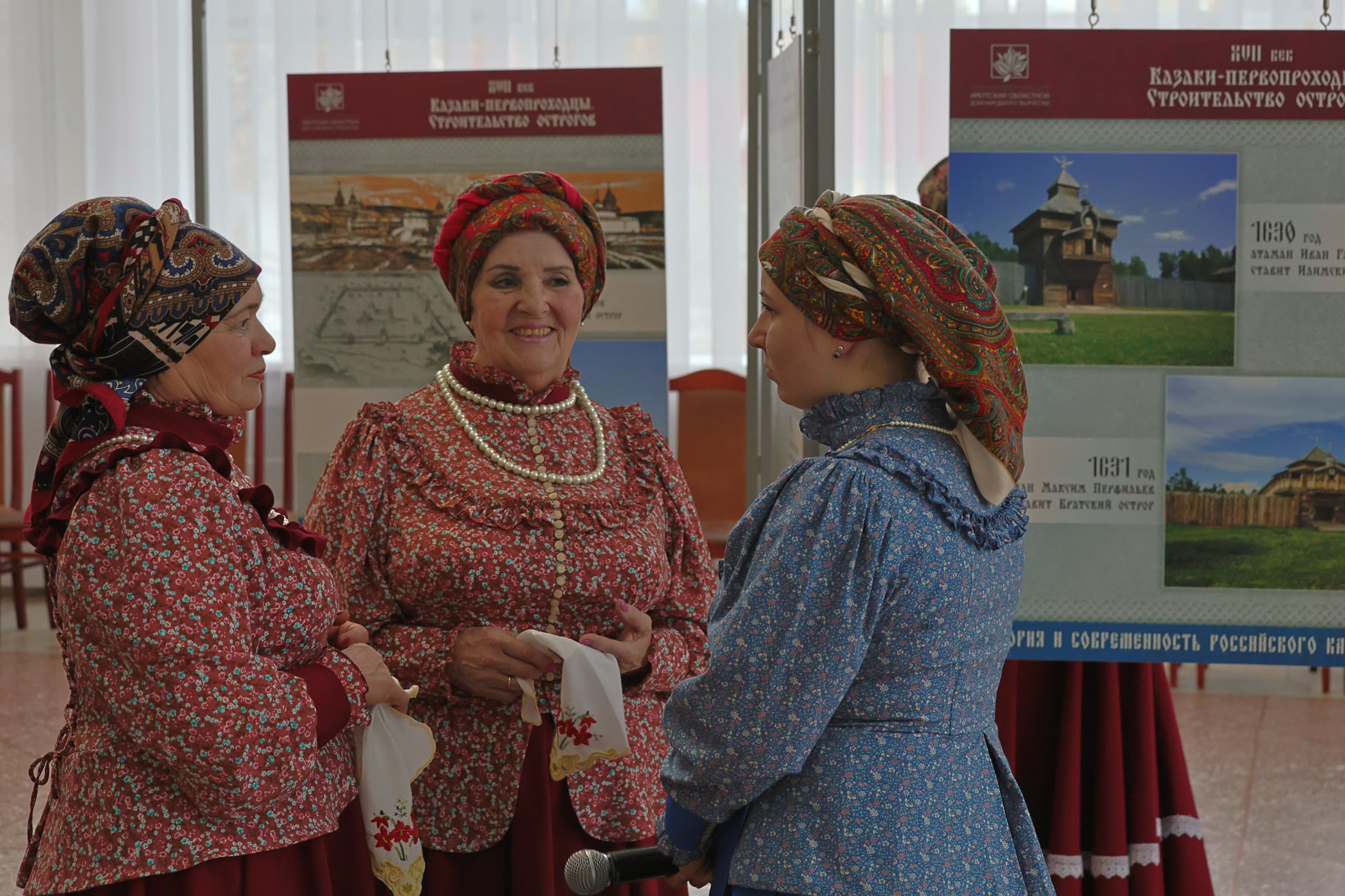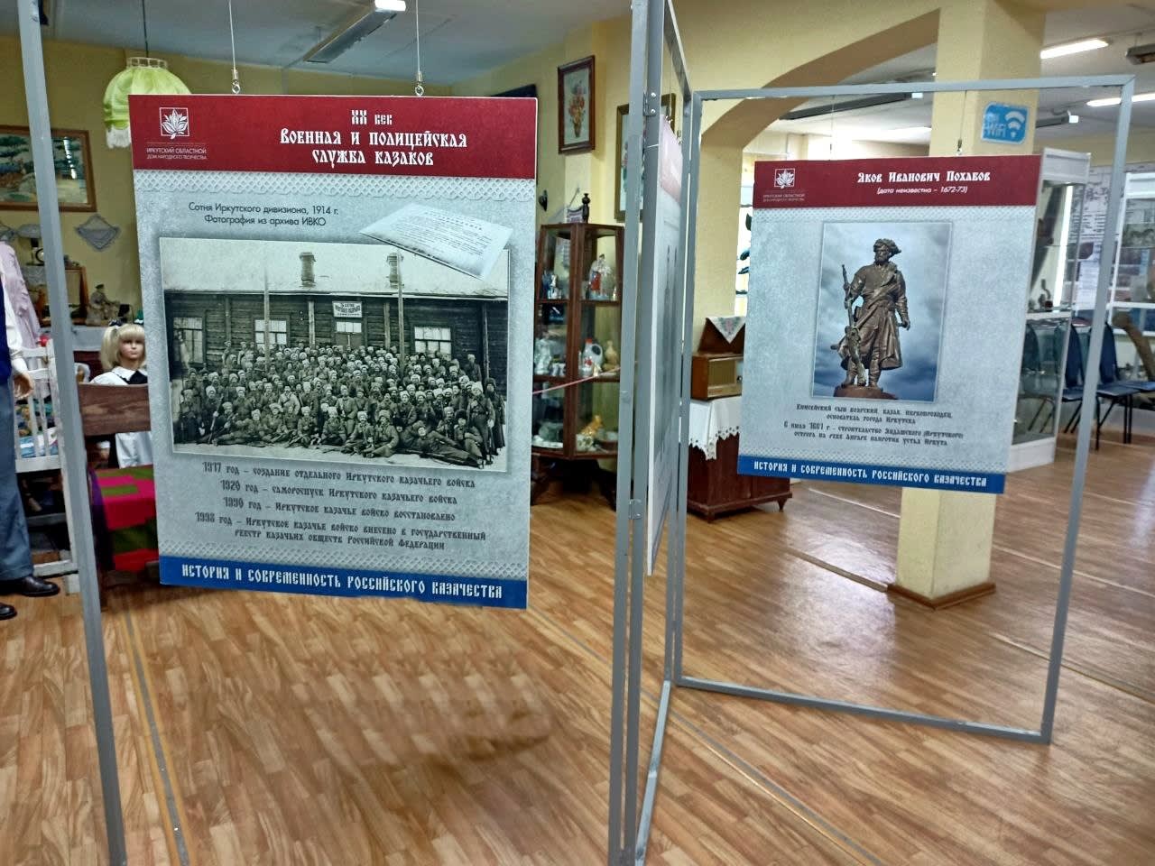 Материалы выставки связывают ключевые события жизни первопроходцев, основателей сибирских острогов, и современного войскового казачьего общества Иркутской области.