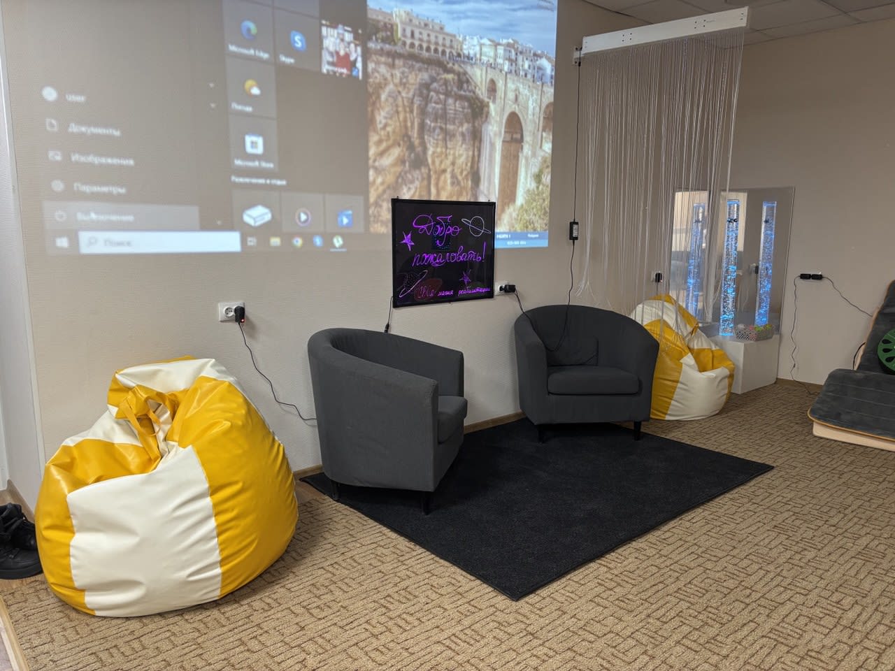 Помещение оборудовано ароматерапией, светотерапией, тактильными панелями, релаксационными креслами с массажными накидками, аудиосистемой для воспроизведения успокаивающих звуков. Также в комнате есть стимуляция разных анализаторов, направленная на переключение нервной системы. Как отмечают организаторы, это создает атмосферу, которая помогает снизить уровень тревожности и улучшить психоэмоциональное состояние.