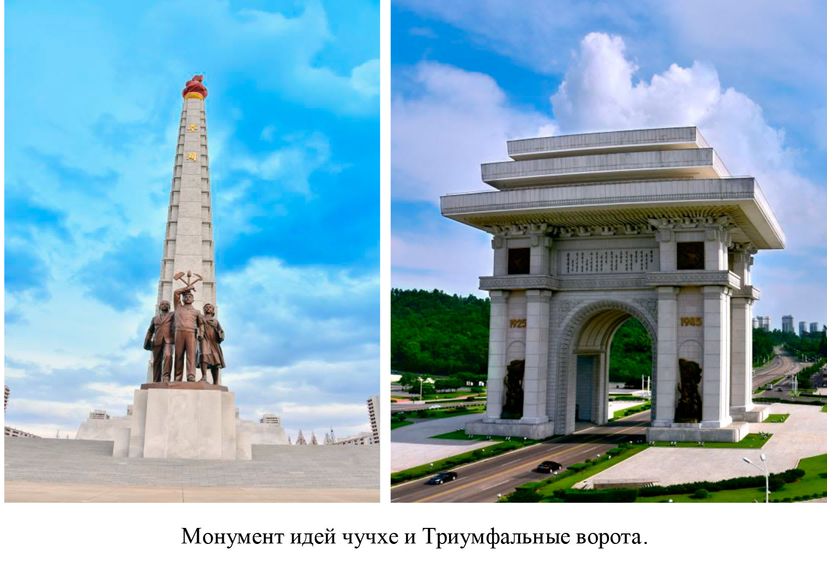 Монумент идей чучхе, который считается самой высокой каменной башней в мире, и величественные Триумфальные ворота тоже помогают понимать политическую философию этой страны и историю современной Кореи.