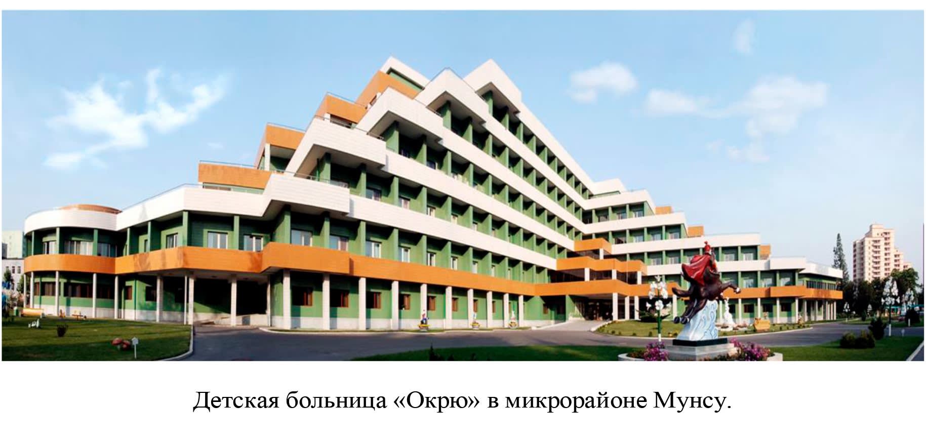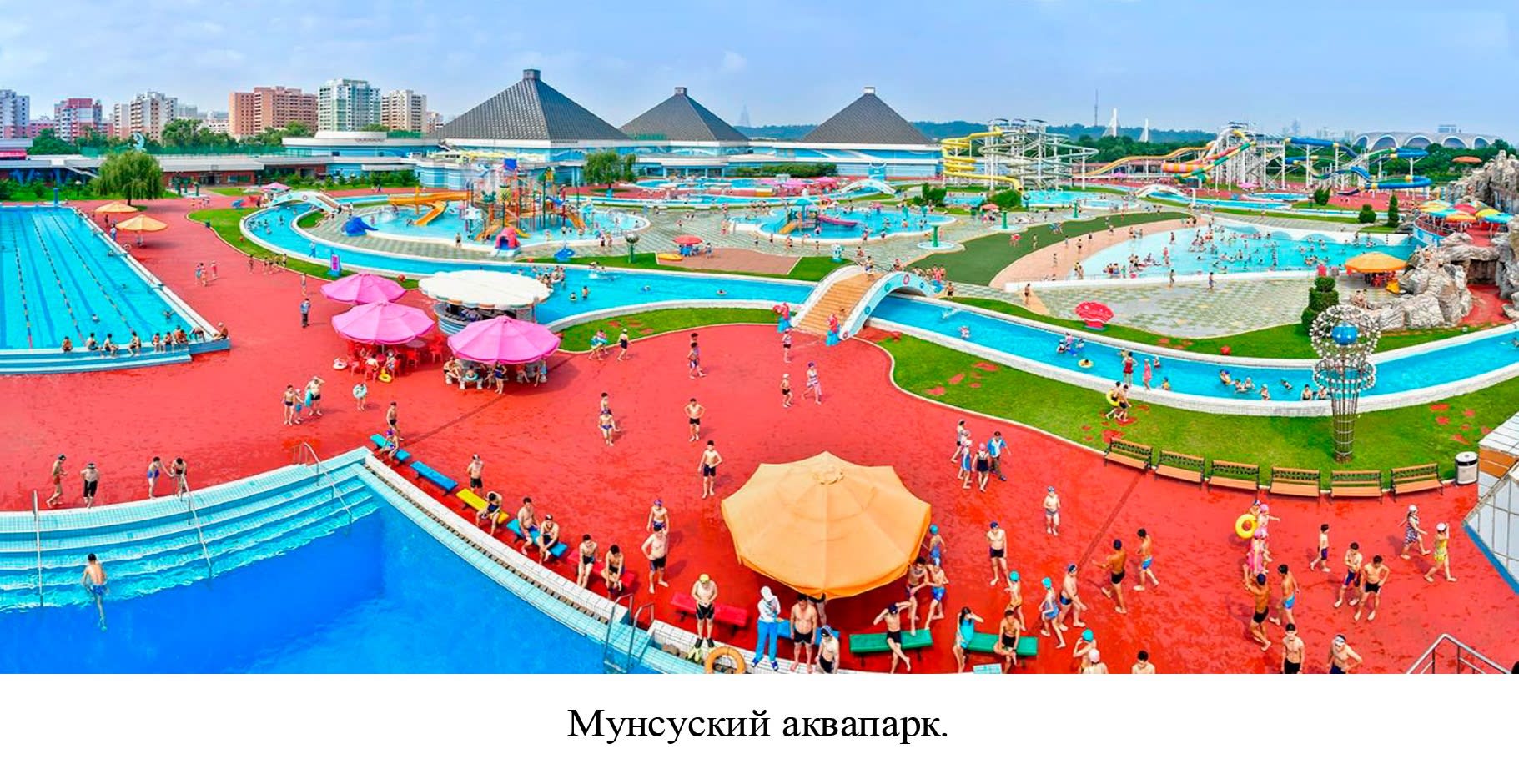 В микрорайоне Мунсу находятся здравоохранительные учреждения, включая известный Пхеньянский роддом, Детскую больницу «Окрю» и др., а также Мунсуский аквапарк. Эти медучреждения дают понять, насколько огромны медицинские льготы, предоставляемые народу ТПК и правительством Кореи, а в аквапарке – почувствовать, какой высоты достиг уровень цивилизации корейского народа. Пожалуй, посетители Кореи, раз уж поразвлекшиеся в этом аквапарке, захотели бы поехать туда снова и снова.