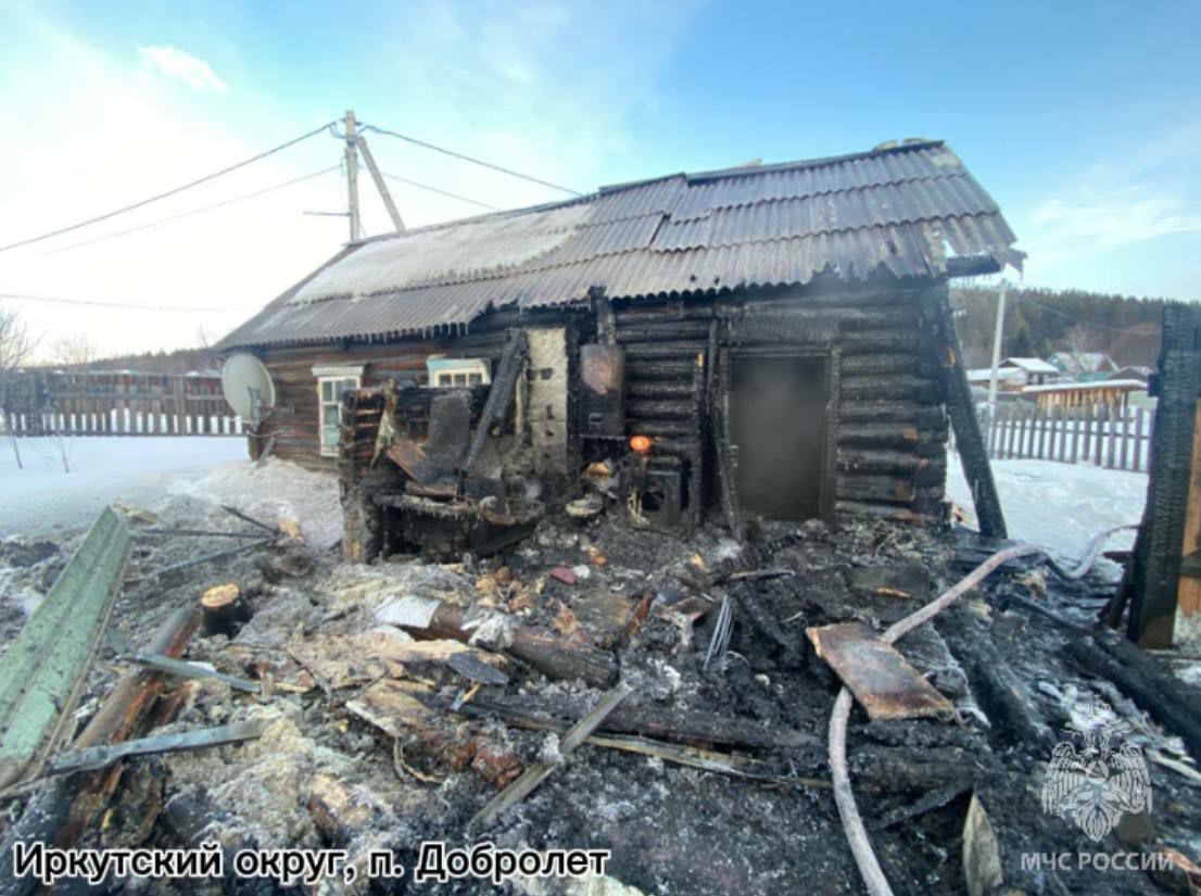 В поселке Добролет Иркутского района горел жилой дом. Причиной стало короткое замыкание включенного обогревателя. В комнате обнаружен погибший 49-летний мужчина. Открытое горение на 20 квадратах ликвидировали 13 пожарных и 4 единицы техники.