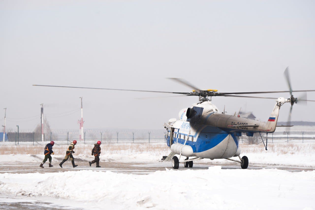 Тренировка проводилась с вертолетом Ми-8, где десантники-пожарные совершали спуски на спусковых устройствах роликового типа с высот от пяти до 40 метров. Новички должны были сделать семь спусков, опытные – пять.