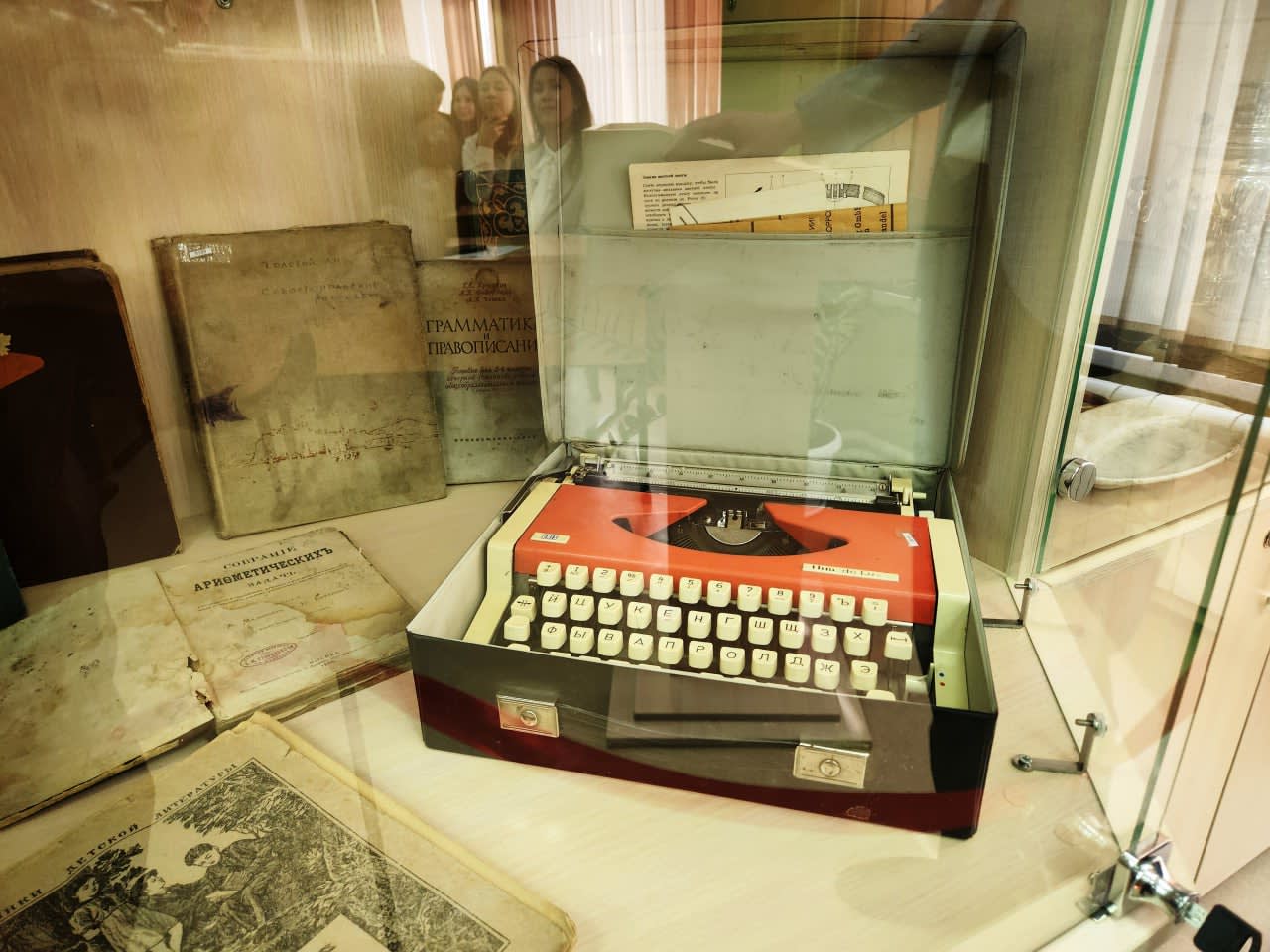 Есть в музее раритет – югославская печатная машинка советских времен. Когда-то на ней печатали школьные приказы. На одном из стендов соседствуют хайтинский фарфор, туесок и чугунок. Отдельное место занимает ламповый телевизор. Он тоже много лет живет в школе, но уже не работает.
