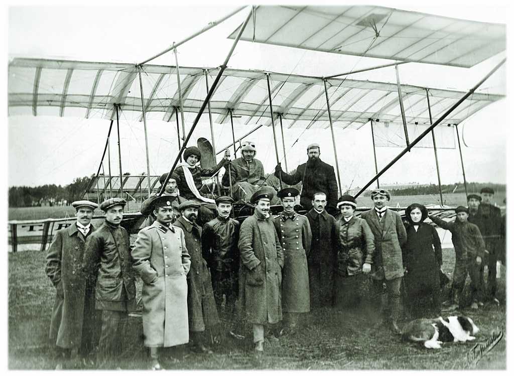 На фотографии, сделанной неким А. Борисовым на Гатчинском аэродроме в 1911 году (возможно, в день сдачи экзаменов на право летать) – теперь уже легендарные люди: на аппарате «Фарман» (слева направо) Федор Федорович Колчин, в белом шарфе – первая российская авиатрисса Лидия Виссарионовна Зверева, на месте летчика – Петр Владимирович Евсюков. Пока не установлен бородач, держащийся за стойку. Стоят: А.И. Фанталов, И.С. Аствацатуров, неизвестный офицер в шинели, Сергей Сергеевич Щетинин, в кожаной куртке – Олег Шарский, Александр Александрович Агафонов, Мстислав Максимович Золотухин, неизвестный без головного убора, авиатрисса Евдокия Васильевна Анатра-Наумова, секретарь Императорского Всероссийского аэроклуба, инструктор Александр Николаевич Срединский, женщина и трое ребят – неизвестны.