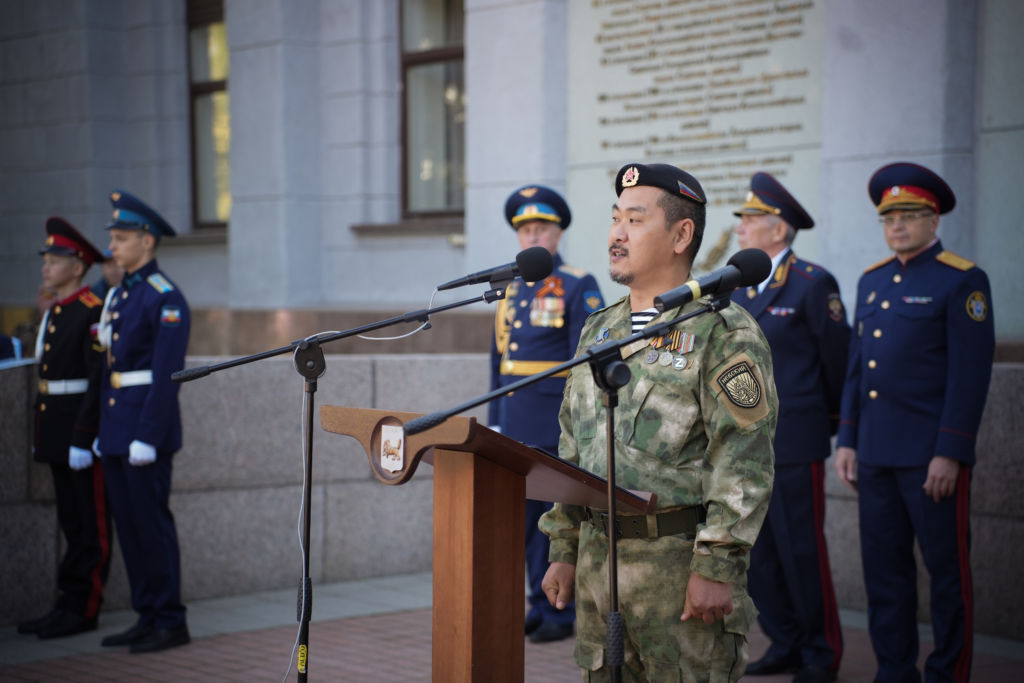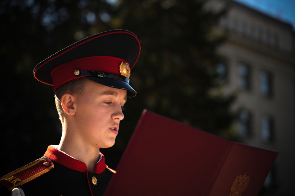 И вот наступает тот самый момент: начальники курсов Иркутского кадетского корпуса имени П.А. Скороходова и Усольского гвардейского кадетского корпуса рапортуют губернатору Иркутской области о готовности курсантов. «Приступить к принятию клятвы!» – командует Игорь Кобзев.