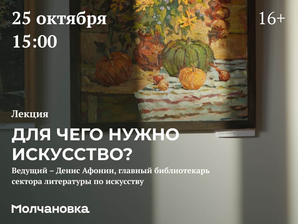 В Молчановке стартует новый цикл лекций по искусству. Первая вводная лекция состоится уже в эту субботу (каб. 510). Мероприятие пройдет в формате живого диалога. Лекцию проведет Денис Афонин, в разговоре он попытается выйти за рамки привычных представлений об искусстве как о хобби или развлечении и рассмотреть его как фундаментальную человеческую потребность.