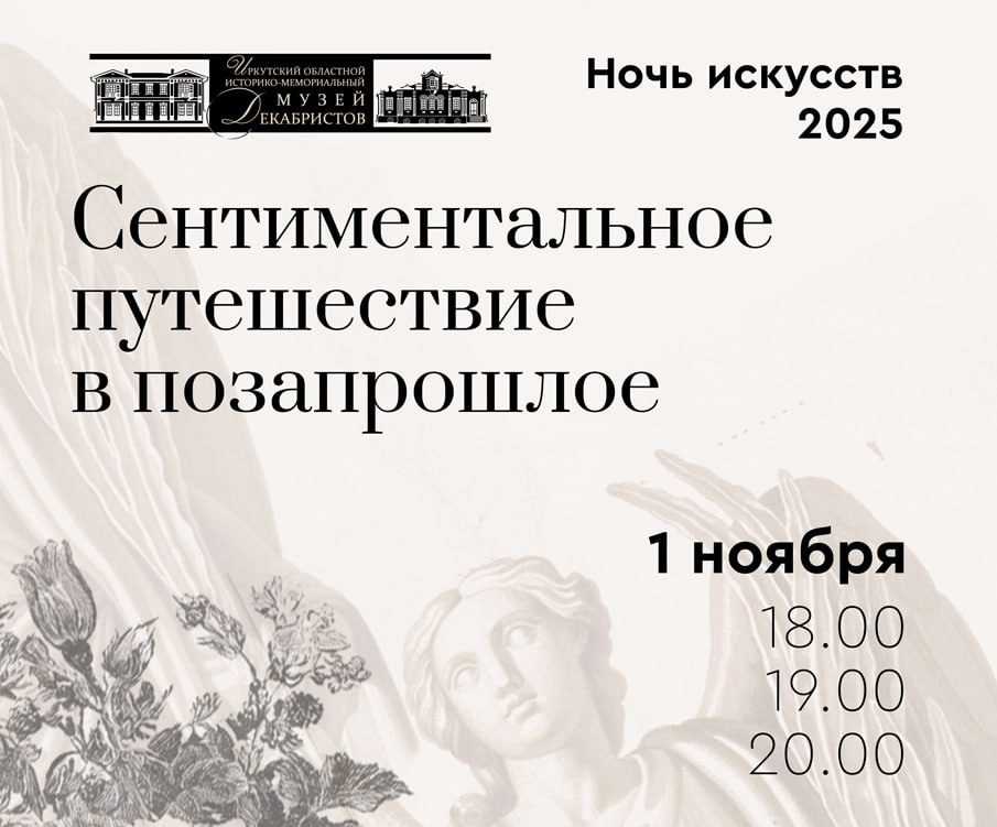 Иркутский музей декабристов приглашает 1 ноября на интерактивную программу «Сентиментальное путешествие в позапрошлое». Мероприятие организовано в рамках Всероссийской акции «Ночь искусств-2025».