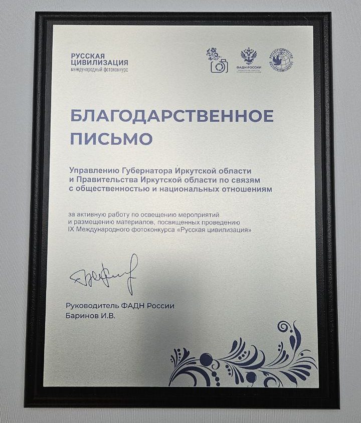 1 ноября делегаты приняли участие в юбилейной X Всероссийской просветительской акции «Большой этнографический диктант» и награждении лауреатов Международного фотоконкурса «Русская цивилизация». Иркутская область стала одним из лидеров по количеству заявок на конкурс, а управление Губернатора и Правительства области получило благодарственное письмо от руководителя ФАДН Игоря Баринова за активное освещение мероприятий.