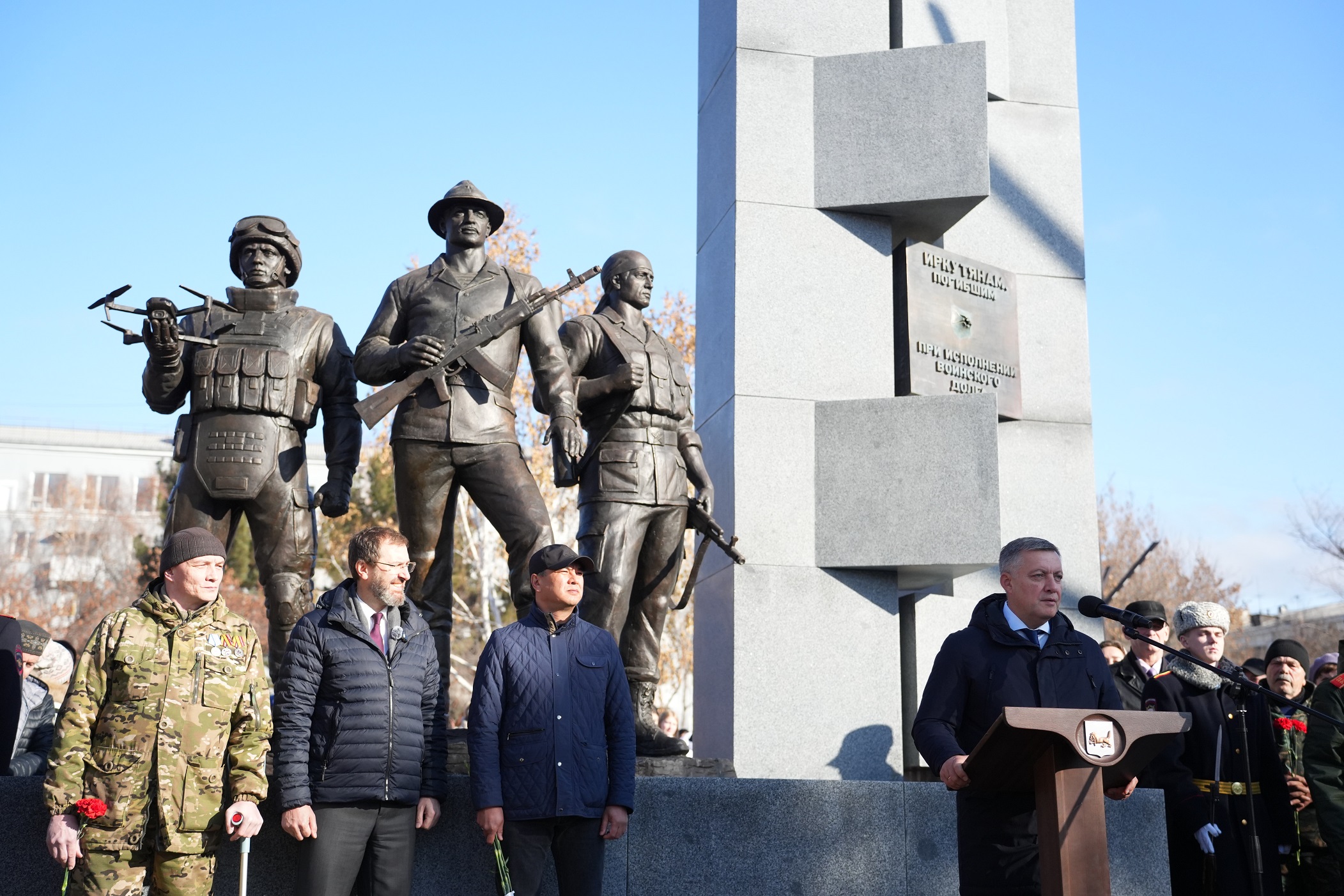 4 ноября, в День народного единства, в Иркутске на площади Декабристов состоялась торжественная церемония открытия мемориального комплекса «Аллея памяти». Центральное место в обновленном общественном пространстве занимает скульптурная композиция «Дед, отец и сын», символизирующая героев разных военных конфликтов. Событие приурочено к празднованию Года защитника Отечества, объявленного президентом России Владимиром Путиным.