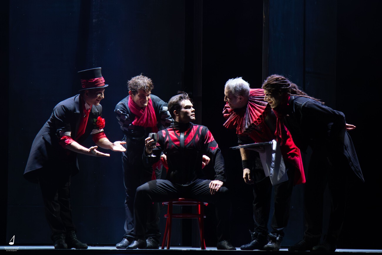 Помимо основных героев, которых играют артисты балета, в спектакле появляются так называемые трикстеры – актеры шекспировского театра. Их исполняют в разных составах вокалисты театра.
