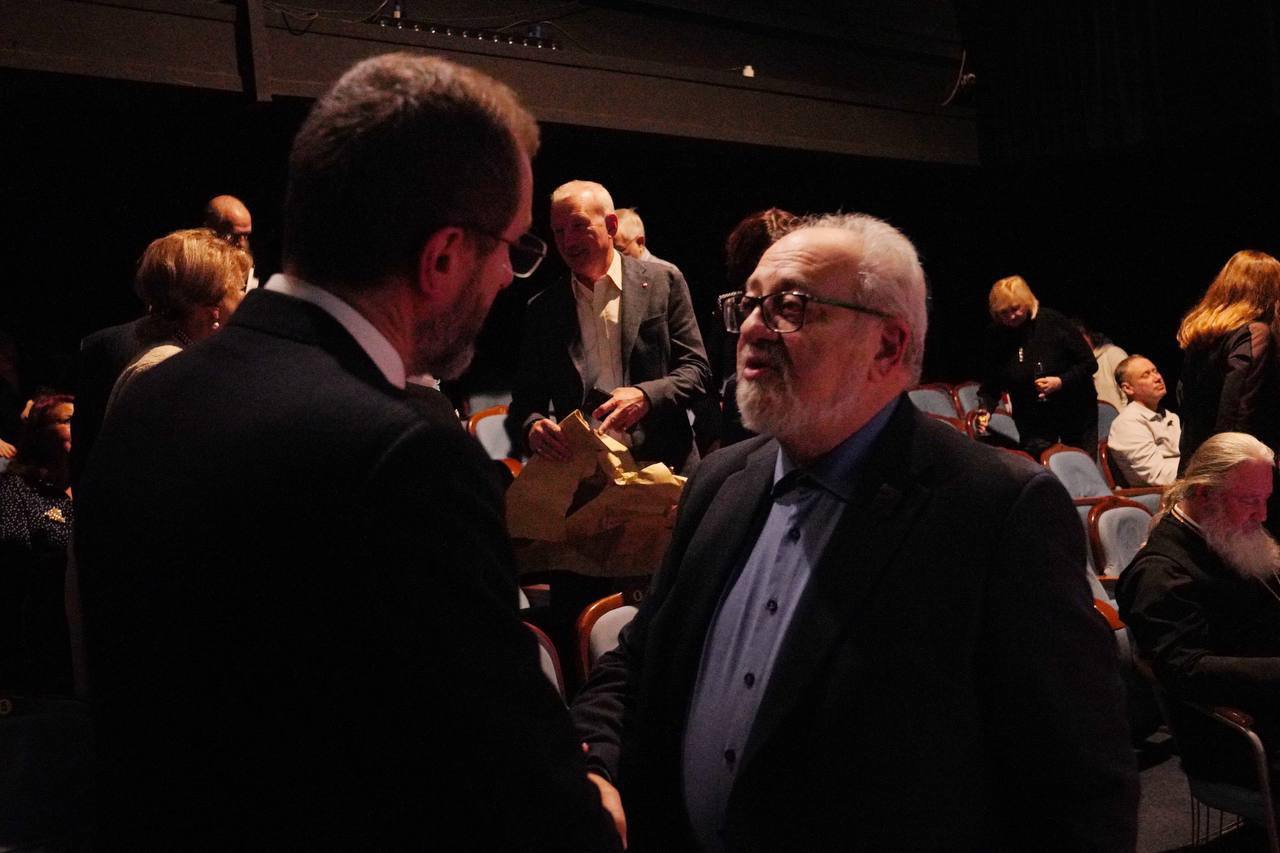 Автора поздравили председатель Заксобрания Александр Ведерников, депутат ЗС Дмитрий Ружников, митрополит Иркутский и Ангарский, владыка Максимилиан, министр культуры Олеся Полунина, мэр Иркутска Руслан Болотов, директор Иркутского академического драматического театра им. Н.П. Охлопкова Анатолий Стрельцов.