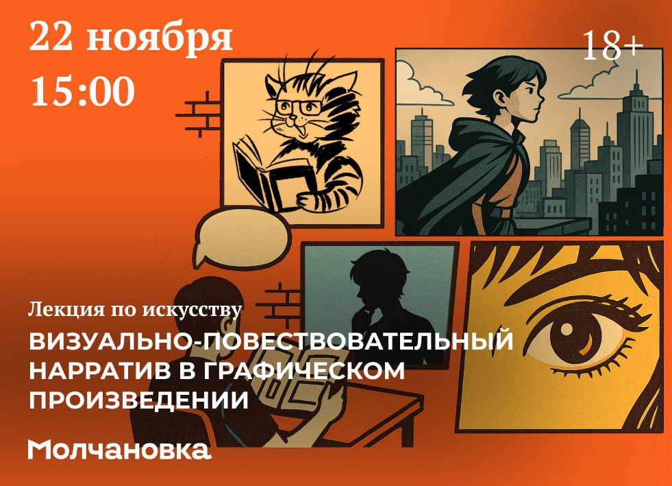 В субботу в Молчановке состоится лекция «Визуально-повествовательный нарратив в графическом произведении». На мероприятии расскажут о магии визуально-повествовательного нарратива – особом языке, на котором говорят с нами авторы. Лекция будет полезна как фанатам комиксов, так и всем, кто интересуется современным искусством, литературой и теорией медиа.