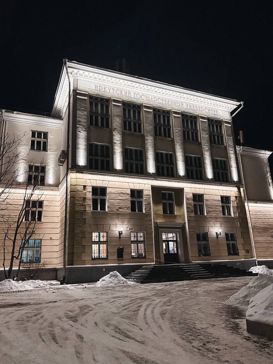На здании главного корпуса ИГУ появилась архитектурная подсветка