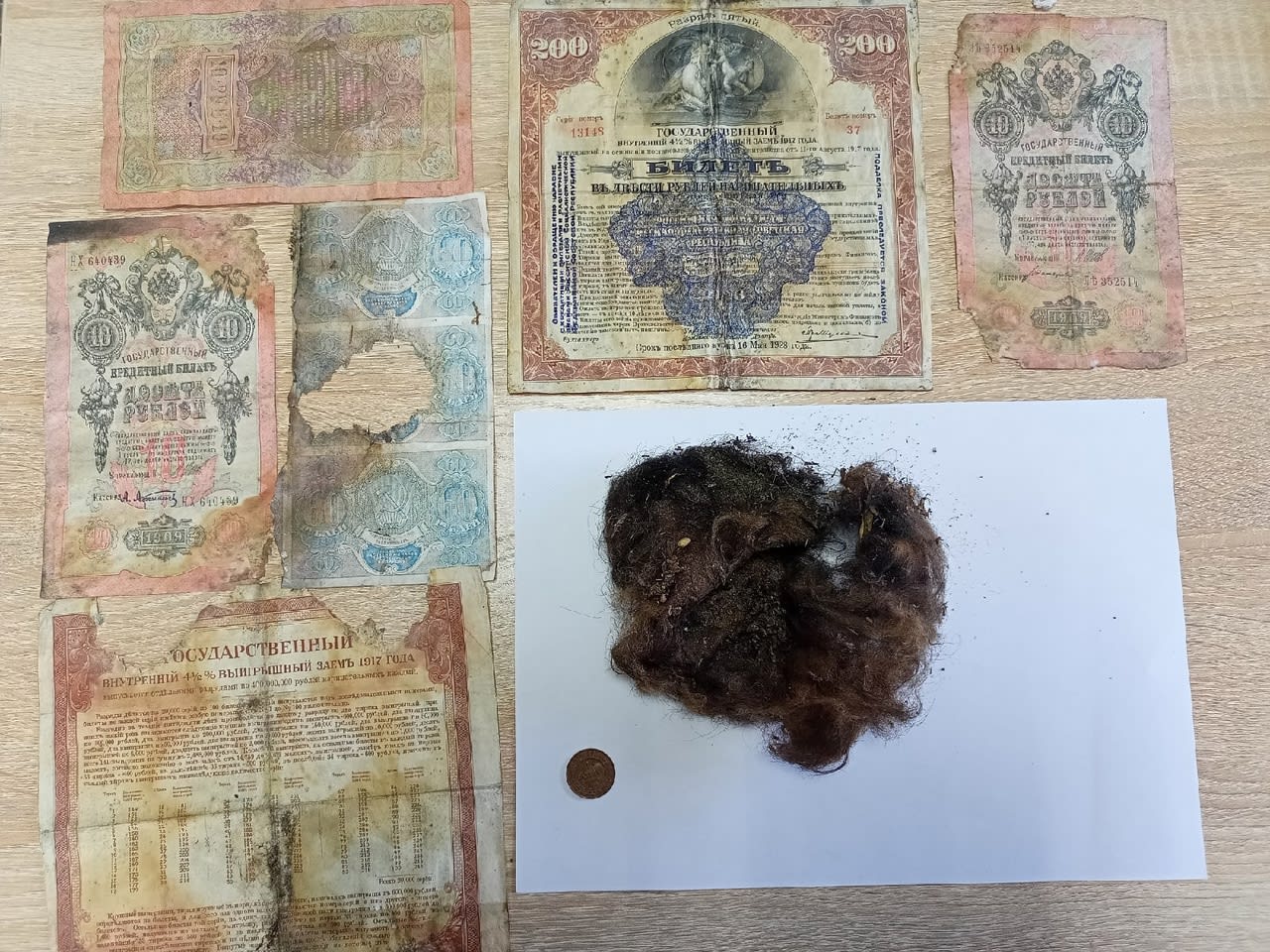 Как установила дендрохронологическая экспертиза, деревья для постройки были заготовлены в 1923 году. Волонтеры помогли разобрать дом и перевезти его на новое место, а также освоили технологию изготовления глинобитных печей. Среди необычных находок во время разбора усадьбы был обнаружен строительный приклад. В потолочную балку строители положили зерно, шерсть и деньги дореволюционного и раннего советского периодов.