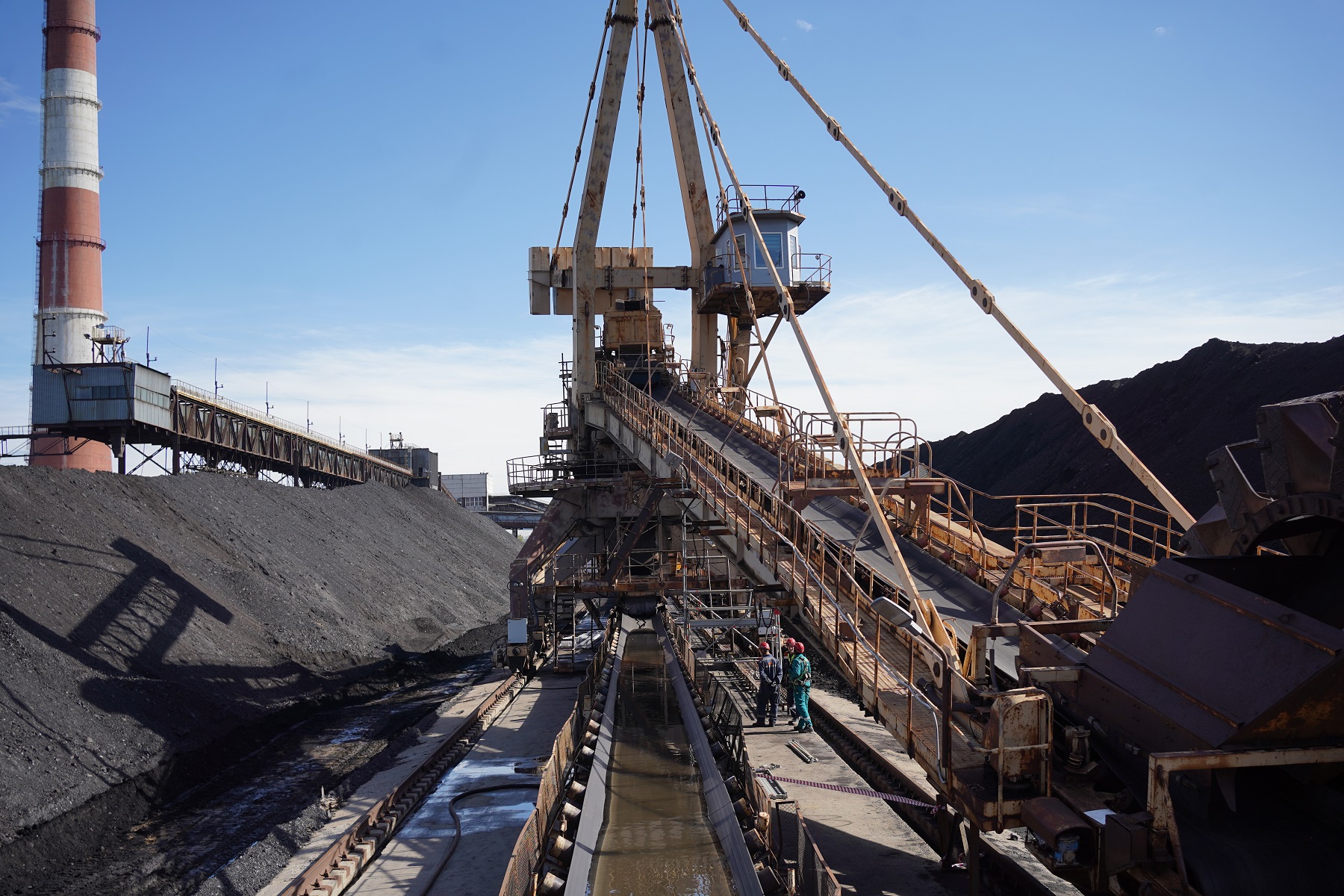Одна часть измельченного угля по конвейеру уходит на склад, где находится запас топлива. Другая часть идет дальше по ленте через дробилки мелкого дробления на бункеры сырого угля, откуда поступает в мельницы, где продолжает измельчаться до пыли, затем с потоком горячего воздуха подается в котел. Самая высокая точка, до которой доходит конвейер, находится на высоте 40 метров, что сопоставимо с 15-этажным домом. Всего работает 13 конвейеров общей протяженностью около трех километров.