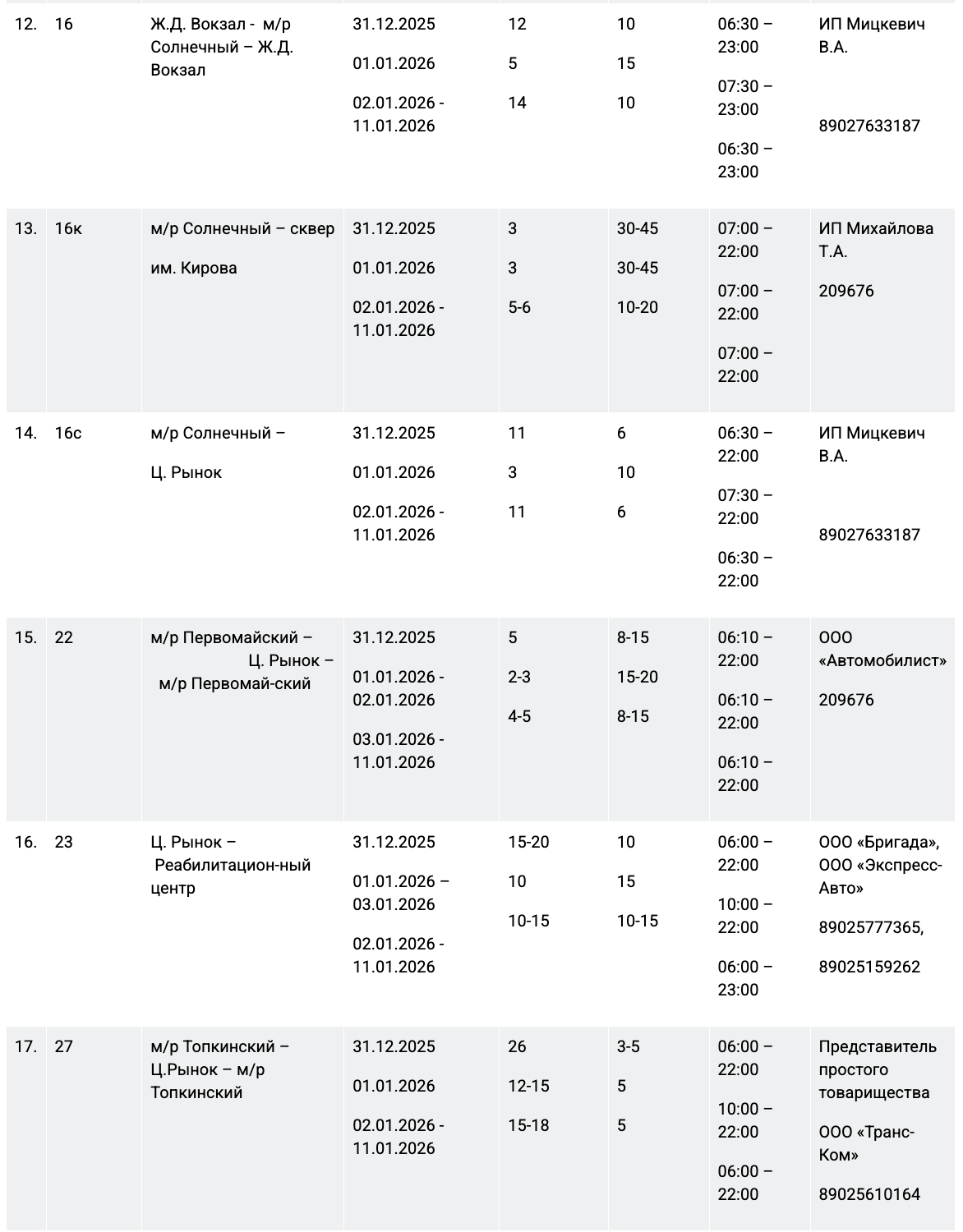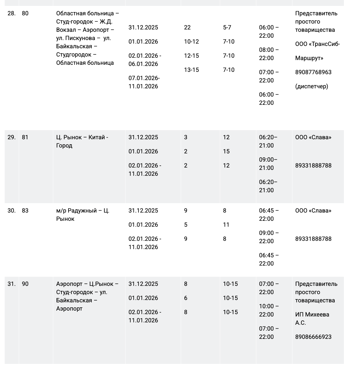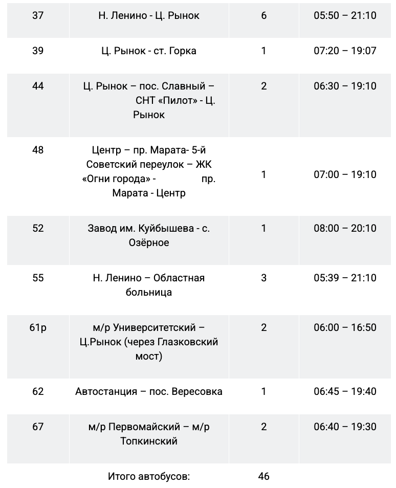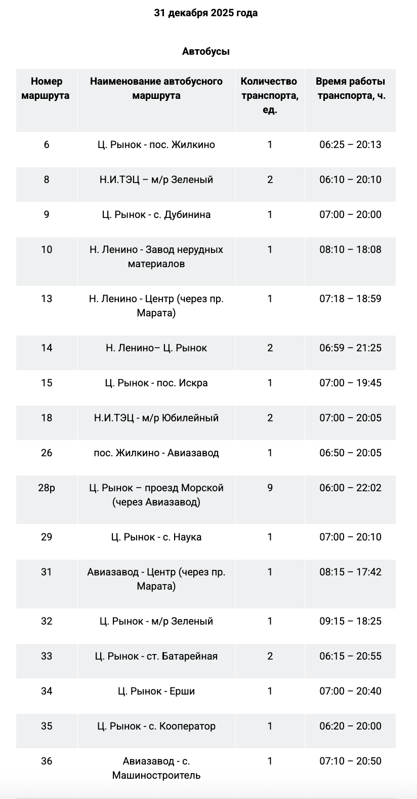 31 декабря работу муниципального пассажирского транспорта продлят до полуночи на следующих маршрутах: