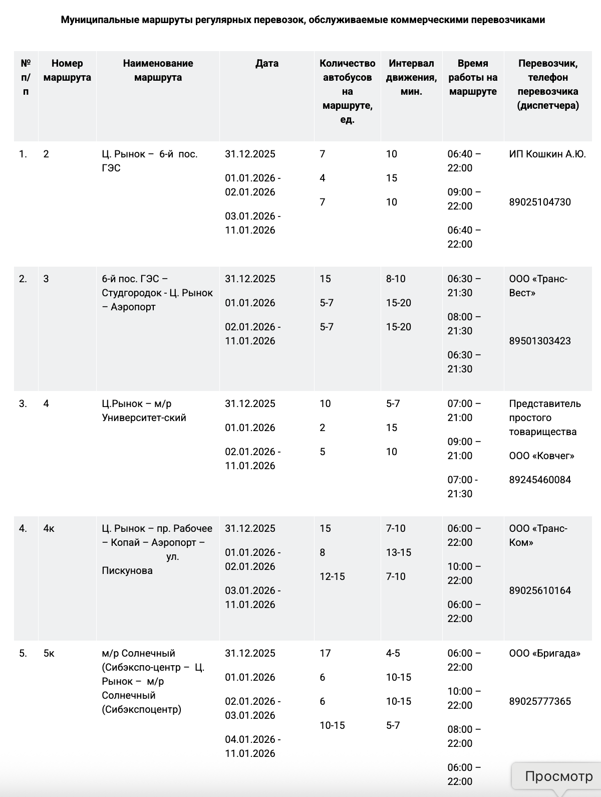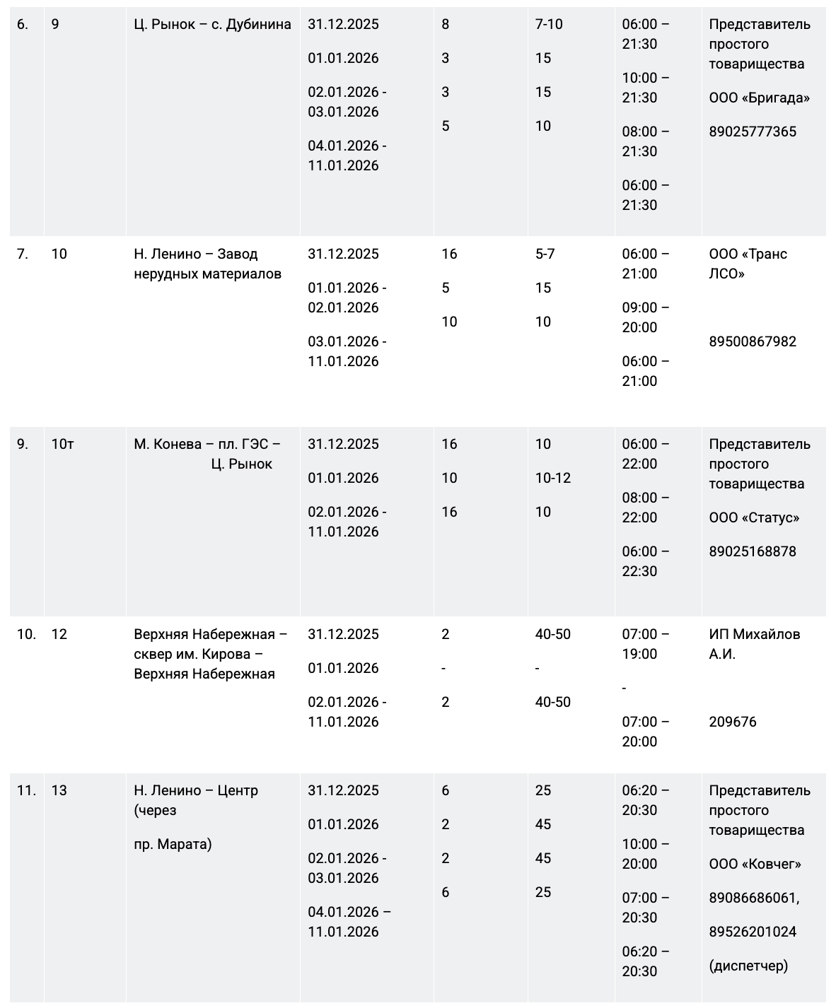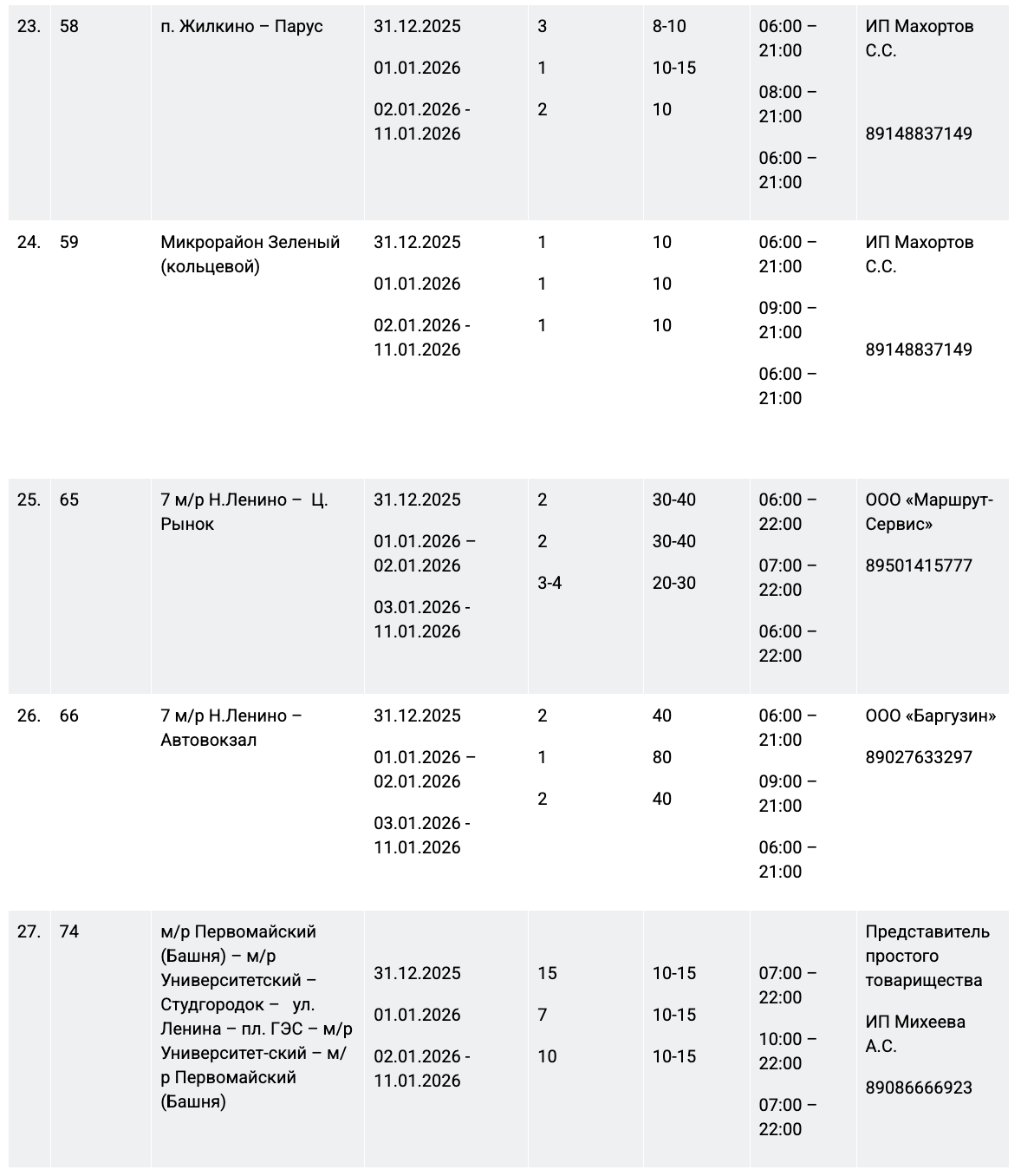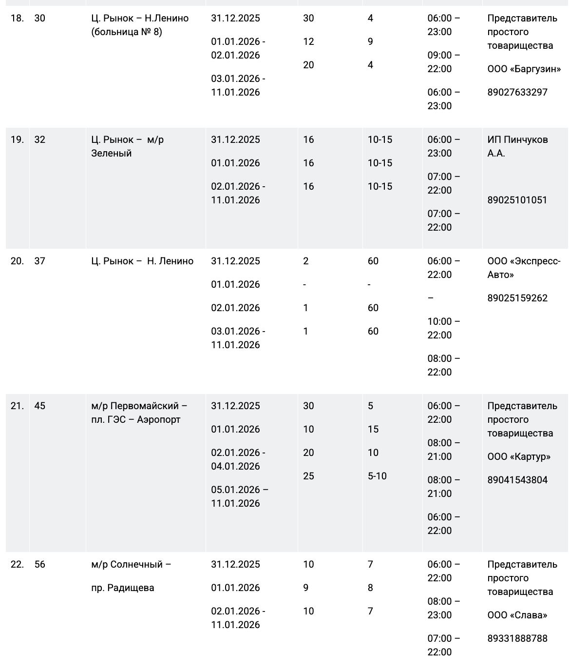 31 декабря работу муниципального пассажирского транспорта продлят до полуночи на следующих маршрутах: