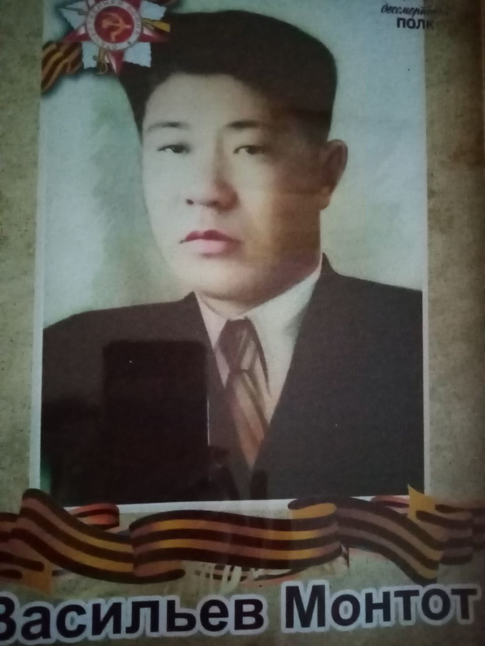 В 1941 году Монтота, как и многих деревенских мужчин, призвали на фронт. Попал он в пехотные войска, сражался за Москву. Враг двигался к столице, но на пути его уже вставали грозные сибирские дивизии. Терпение, настойчивость, ответственность, воспитанные родителями, помогли Монтоту Васильеву воевать, выдержать военное лихолетье. Домой он вернулся с победой.