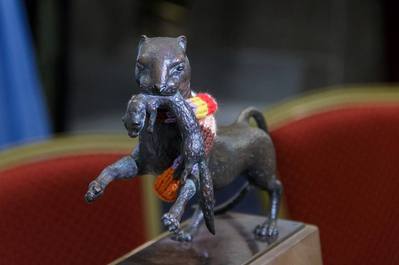Сначала шарф украшал скульптуру Бабра в 130‑м квартале – он был повязан на памятник на время морозов. Теперь изделие стало частью музейной экспозиции. Его планируют демонстрировать в рамках праздничных мероприятий ко Дню города.