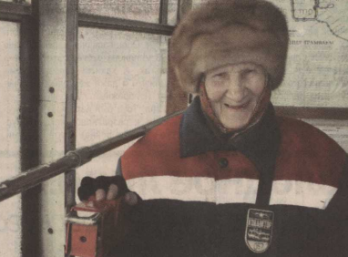 Рабочий день кондуктора начинается в пять утра и продолжается до 12 ночи. В свои 82 года Галина Касьяновна Рузляева предпочитает не сидеть дома, а порхать среди толкающихся пассажиров, словно хрупкая миниатюрная фея. Кроме того, наша героиня, пожалуй, старейший кондуктор Иркутска, а возможно, и России. Впервые билетик на проезд в трамвае она продала аж в 1951 году.