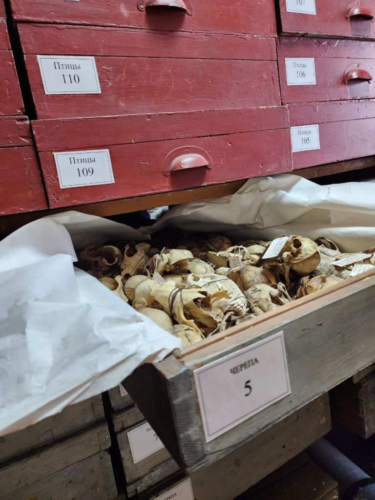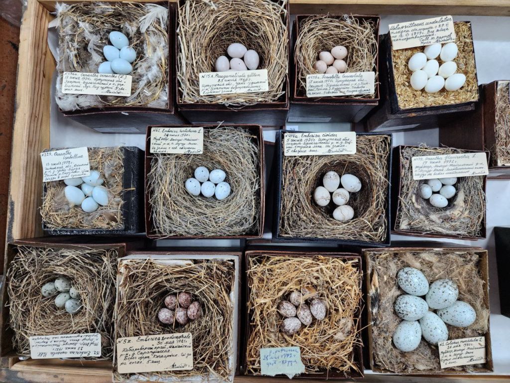 Ещё одна составляющая этого ресурсного центра — это коллекция позвоночных животных, которая включает уникальную оологическую коллекцию — это коллекция яиц птиц. где полностью определены порядка 100 видов птиц. То есть мы можем, глядя на яйцо, уже не определяя видовую принадлежность птицы, определить, чье это гнездо, какой вид птицы заселил это гнездо, не причиняя вреда и не тревожа самок, спокойно определять видовую принадлежность того или иного гнезда и расположенных яиц в нём.