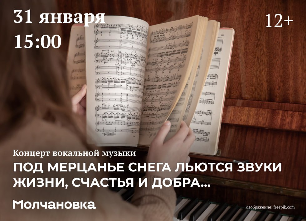 Молчановка приглашает на концерт вокальной музыки «Под мерцанье снега льются звуки жизни, счастья и добра…», который состоится 31 января. Это зимний концерт с живыми голосами в классических традициях. В программе – произведения зарубежных и отечественных композиторов в исполнении солистов Студии академического вокала Дворца культуры «Нефтехимик» (г. Ангарск).