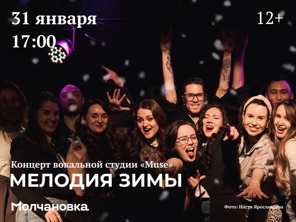 В субботу состоится концерт вокальной студии «Muse». Когда душа хочет петь, тяжело устоять перед этим прекрасным желанием – независимо от возраста и уровня подготовки. А зачем сопротивляться? Приходите на концерт «Мелодия зимы» и насладитесь красивыми песнями в исполнении участников вокальной студии «Muse»!