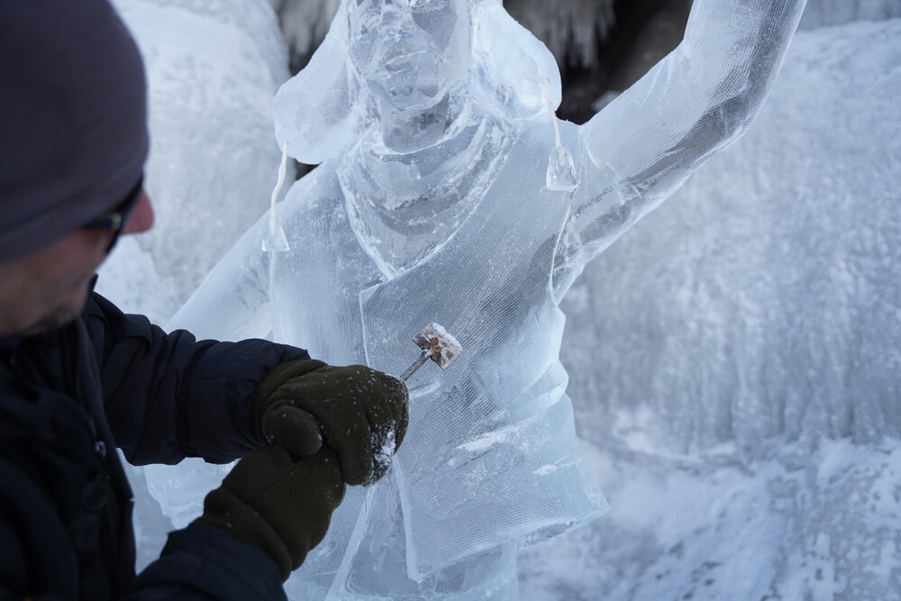 Мастера из Пермского края и Иркутской области создали настоящие шедевры изо льда, среди них ребенок, который купается в Байкале, человек, плывущий на лодке «Искусство», и др. Также в экспозицию вошла фотовыставка: изображены лучших ледовые скульптуры прошлого года. Кадры вставлены в лед. Автор фотографий Анна Диденко.