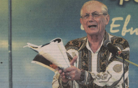 Утром поэт с семьей выехал из Братска, где в понедельник стартовал его творческий тур по Приангарью, посвященный 75-летнему юбилею. Выступление в Зиме задерживалось почти на час, однако народ не расходился. И когда автобус наконец появился у ворот дома-музея, люди приветствовали поэта хлебом-солью и песнями. Потом юбиляра вывели на сцену, фоном для которой стала афиша к его прошлому творческому вечеру со стихами «Я сибирской земли подорожник…». Евгений Евтушенко почти не отличался от своего двойника на фотографии: в просторной рубахе, моложавый, энергичный и, кажется, способный, как в 1960-е годы, зажигать своей поэзией стадионы.