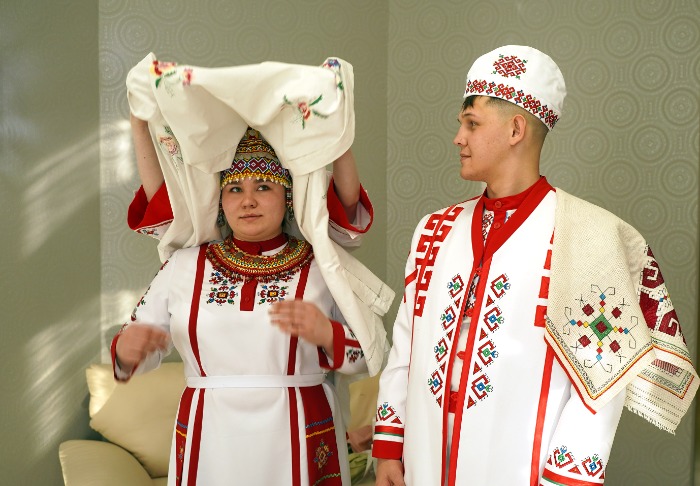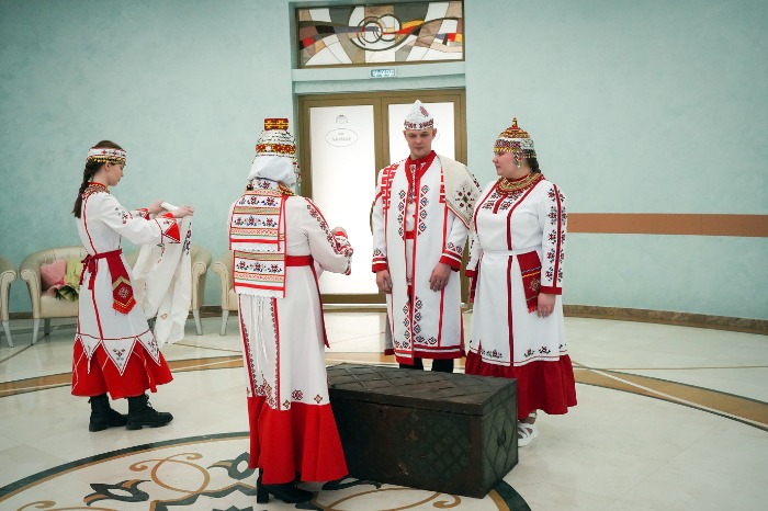 Многие молодожены в феврале выбрали для регистрации брака красивую дату – 26.02.26. Во Дворце бракосочетания Иркутска 26 февраля поженились около 80 пар. На фоне остальных выгодно выделялись София Бузикова и Денис Шевченко из Жигалово. Жених и невеста, а также их родственники прибыли к торжественной регистрации в чувашских национальных костюмах.