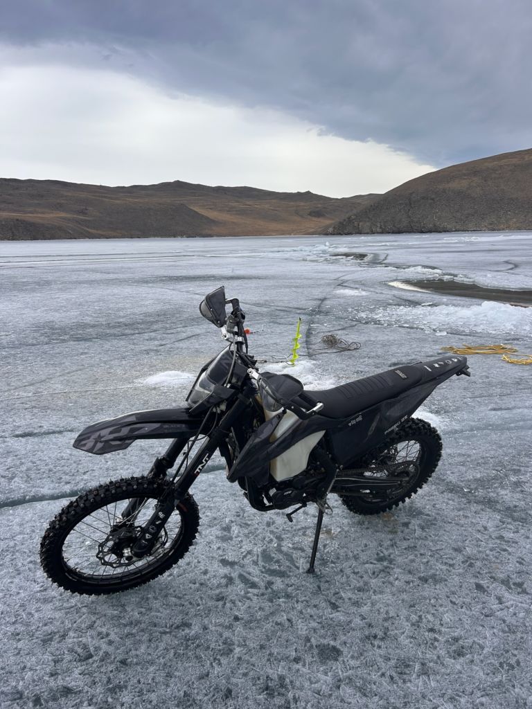 В марте прошлого года на выходе из Ольхонских ворот поднимали затонувший мотоцикл, он лежал на глубине 177 метров. Здесь другая история. Мужчина хотел перепрыгнуть через трещину, но что-то пошло не так. Сам остался жив, а мотоцикл утонул.